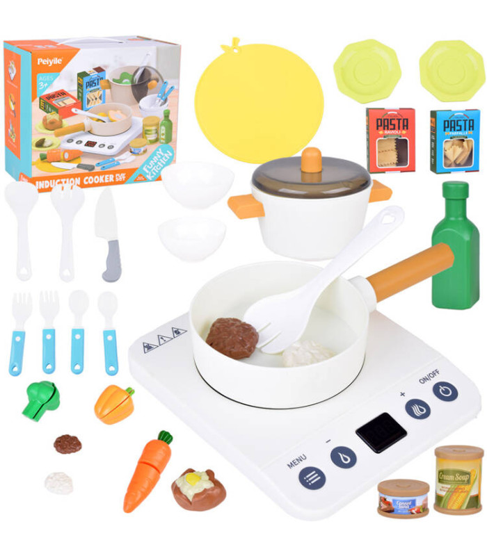 Indukcinė viryklė su virtuvės indais ir daržovėmis – puiki pramoga jūsų vaikui!
