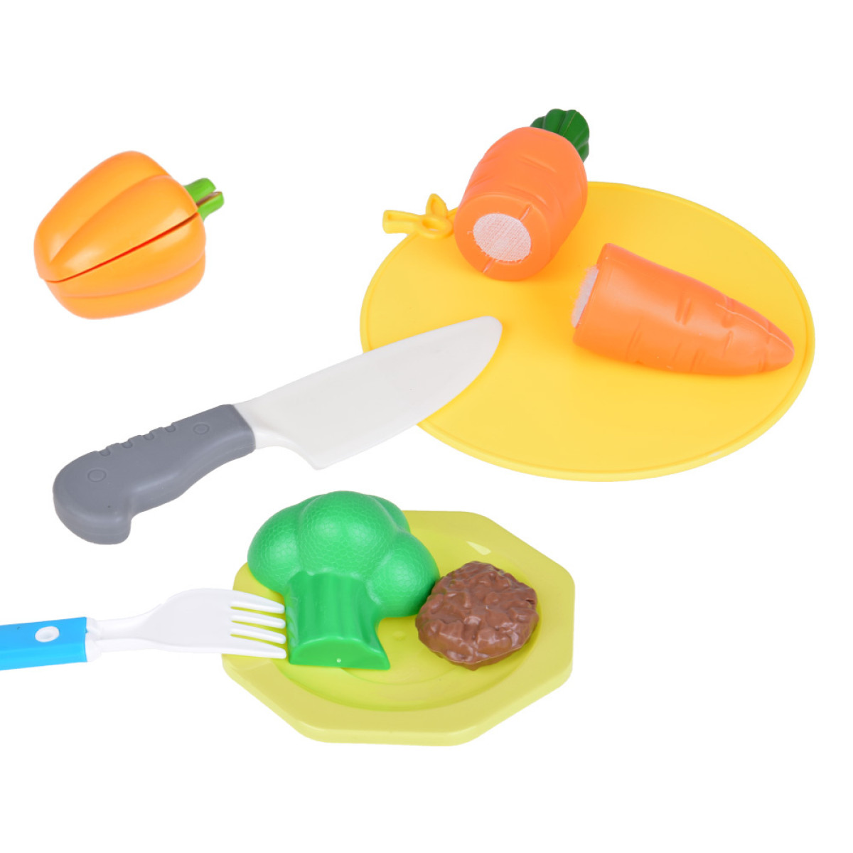 Šis daugiasluoksnis rinkinys suteikia ilgų valandų kūrybingos pramogos. Be to, vaikas gali sužinoti sveikos mitybos principus, suprasti, kaip svarbios daržovės kasdienėje mityboje, ir kaip atrodo subalansuoti patiekalai.