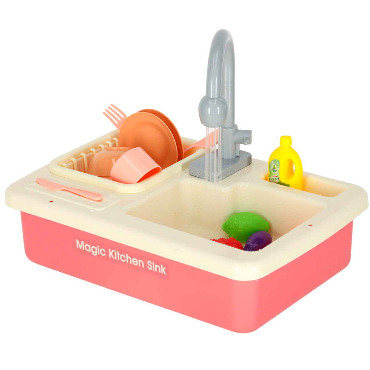 Rožinis zlevozmyvak vaikams su tikra vandens srove ir priedais, 15 dalių