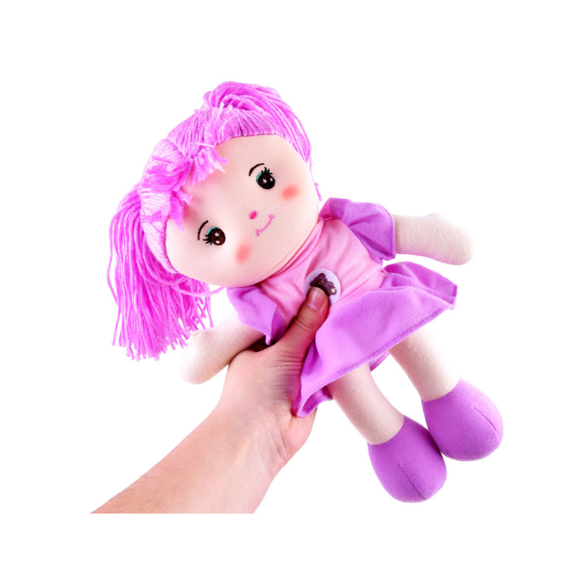 Miela ir minkšta medžiaginė lėlė yra žaislų klasika. Ši lėlė, populiariai vadinama Zuzia, yra puikus pasirinkimas mažyliams, siekiantiems prisiglausti, pasidalinti rūpesčiais ar istorijomis. Ji mielai lydės į pirmą vizitą pas gydytoją ar į darželį. Lėlė pagaminta iš malonaus liesti medžiagos, ant veido turi išsiuvinėtas rudas akytes, rausvą nosytę ir šypseną. Plaukai, suknelė ir batukai yra levandų atspalvių. Ji yra puikiai tinkama prisiglaudimui.