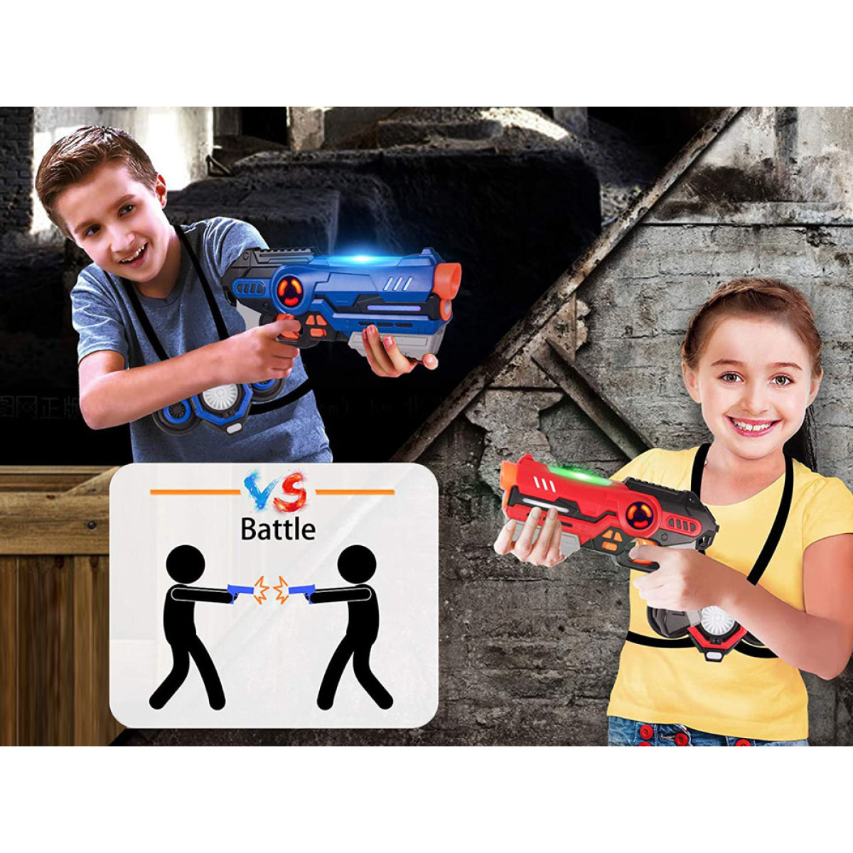 Saugus žaidimas su lazeriniais pistoletais leidžia be rizikos mėgautis „karu“, kurio metu galimybė susižeisti yra minimali. Tai puikus pasirinkimas vaikų žaidimams. Modernus ginklų dizainas primena veiksmo arba mokslinės fantastikos filmus, o garso ir šviesos efektai dar labiau pritraukia dėmesį ir suteikia žaidimui žavesio. Visi elementai pagaminti iš aukštos kokybės plastiko.
