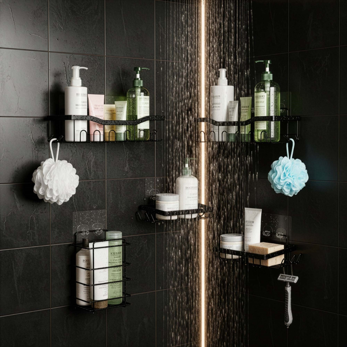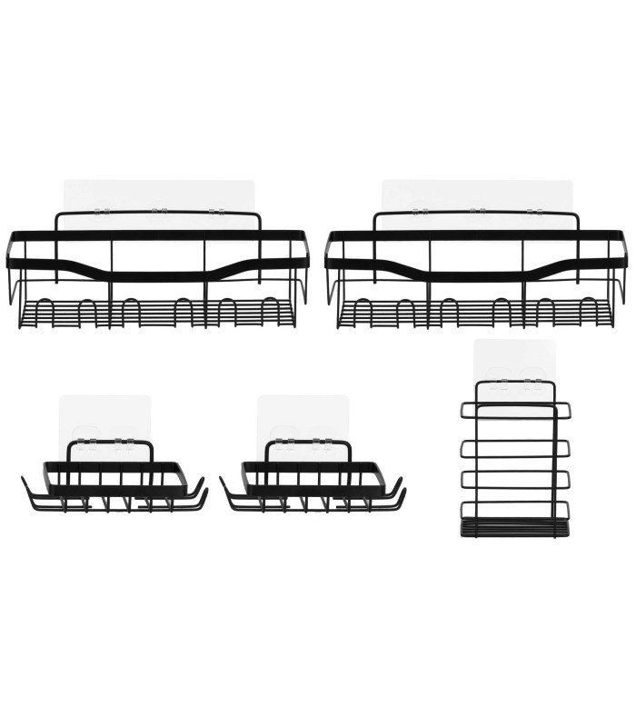 5 dalių lentynų komplektas – patogus ir praktiškas sprendimas daiktams laikyti vonioje, virtuvėje ar kitoje namų erdvėje. Springos prekės ženklo lentynos pagamintos iš nerūdijančio plieno, todėl yra patvarios, atsparios drėgmei ir lengvai prižiūrimos. Matinė juoda spalva suteikia modernų ir tvarkingą vaizdą.