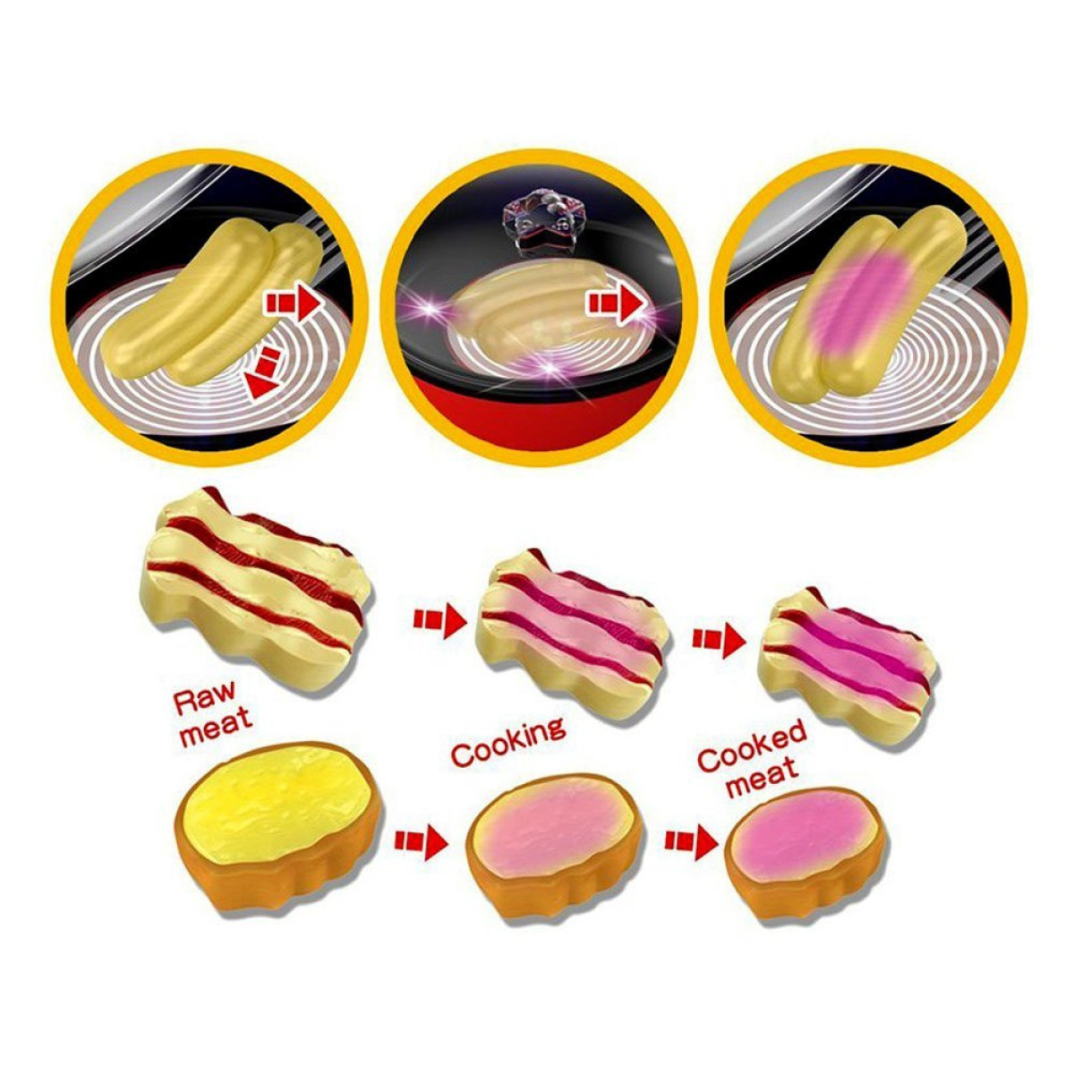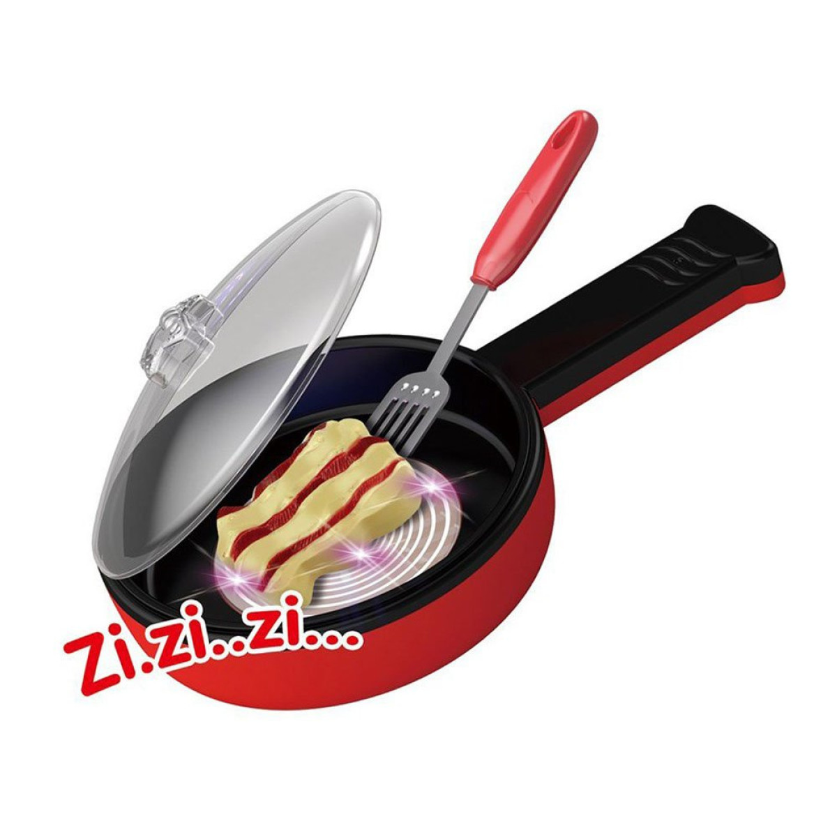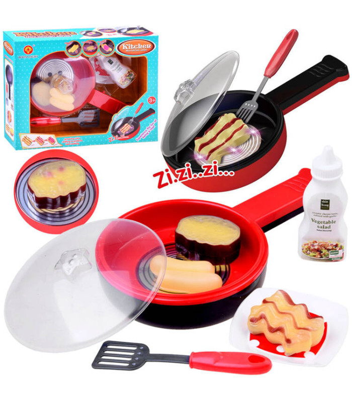 Kiekvienam mažajam kulinarijos entuziastui. Su šiuo rinkiniu mažasis virėjas galės paruošti skanią kepsnį, šoninę ar traškią dešrelę. Keptuvė, paspaudus mygtuką ant rankenos, pradeda šviesti ir skleidžia kepimo garsus. Be to, kepami produktai keičia spalvą dėl švieselių, esančių keptuvės viduryje, todėl žaidimas tampa dar realistiškesnis. Produktas lavina vaizduotę ir rankos miklumą, teikdamas daug džiaugsmo ilgam žaidimo laikui.