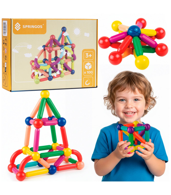 Magnetinis konstruktorius Springos KG0051 yra spalvingas žaidimas su 100 dalių, siūlantis plačias kūrimo ir konstrukcijų galimybes. Magnetiniai blokeliai lengvai jungiasi dėl integruotų magnetų, leidžiant kurti įvairias erdvines struktūras, tokias kaip namai, bokštai, tiltai ar transporto priemonės. Žaidimas skatina kūrybiškumą, loginį mąstymą ir smulkiąją motoriką ir yra tinkamas vaikams nuo 3 metų. Produktas turi CE sertifikatą ir yra pagamintas iš saugios, be BPA plastmasės.
