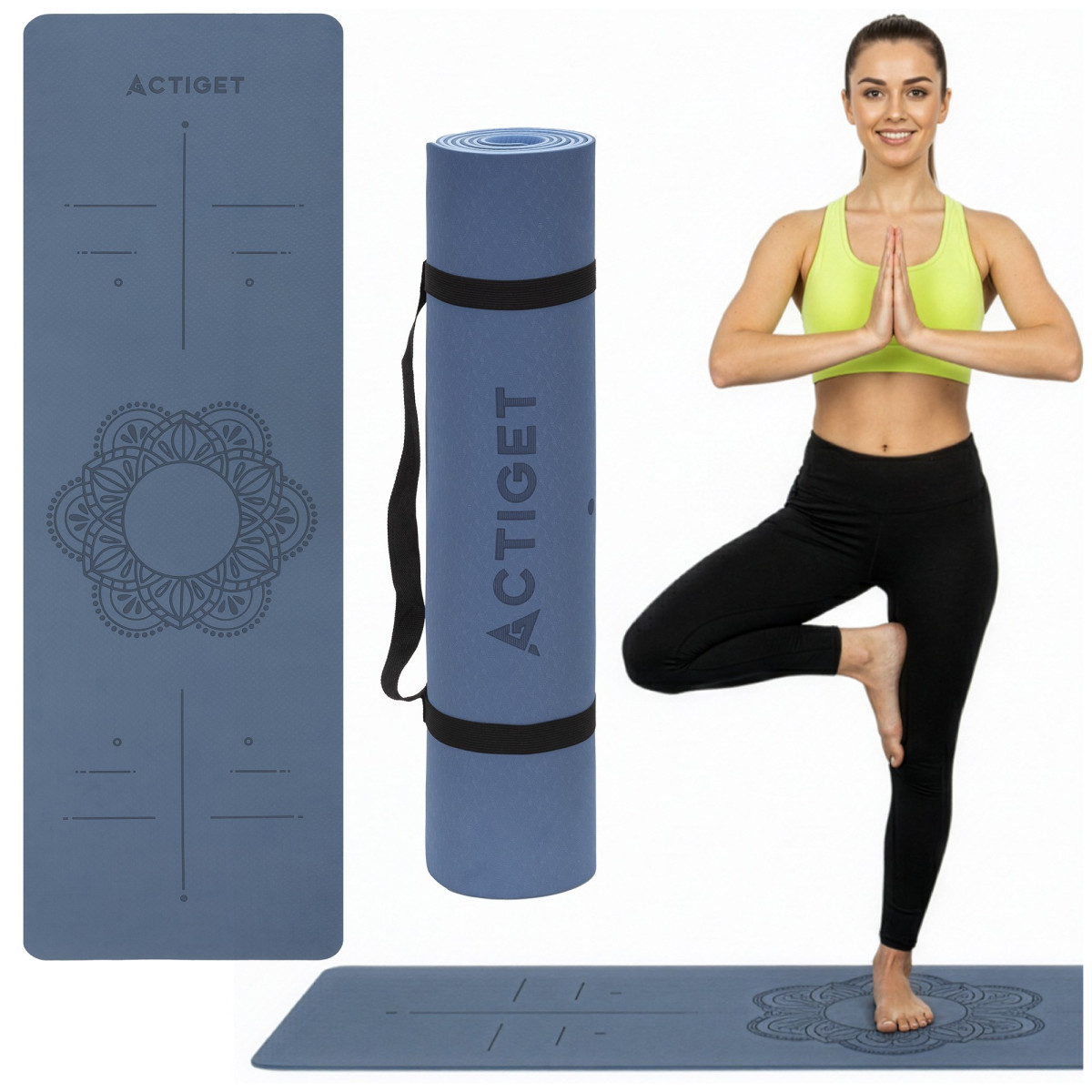 Prekės ženklas: Actiget® Universali serija Spalva: tamsiai mėlyna, mėlyna Medžiaga: TPE Forma: stačiakampė Reljefinis logotipas ir dekoratyviniai elementai vienoje pusėje Svoris: 790 g Išmatavimai: Ilgis: 183 cm Plotis: 61 cm Storis: 0,6 cm Sulankstyto kilimėlio skersmuo: 12,5 cm Kilimėlio nešiojimo dirželis: Maksimalus ilgis: apie 105 cm Dirželio plotis: 2,5 cm Storis: 0,1 cm Papildoma informacija: Gaminys pažymėtas Actiget® logotipu Reguliuojamas dirželis prisitaiko prie kilimėlio ir leidžia jį patogiai pritvirtinti Komplekte: elastinis dirželis patogiam transportavimui TPE kilimėlis – kompaktiškas, stabilus ir patvarus Matmenų paklaida: 2%