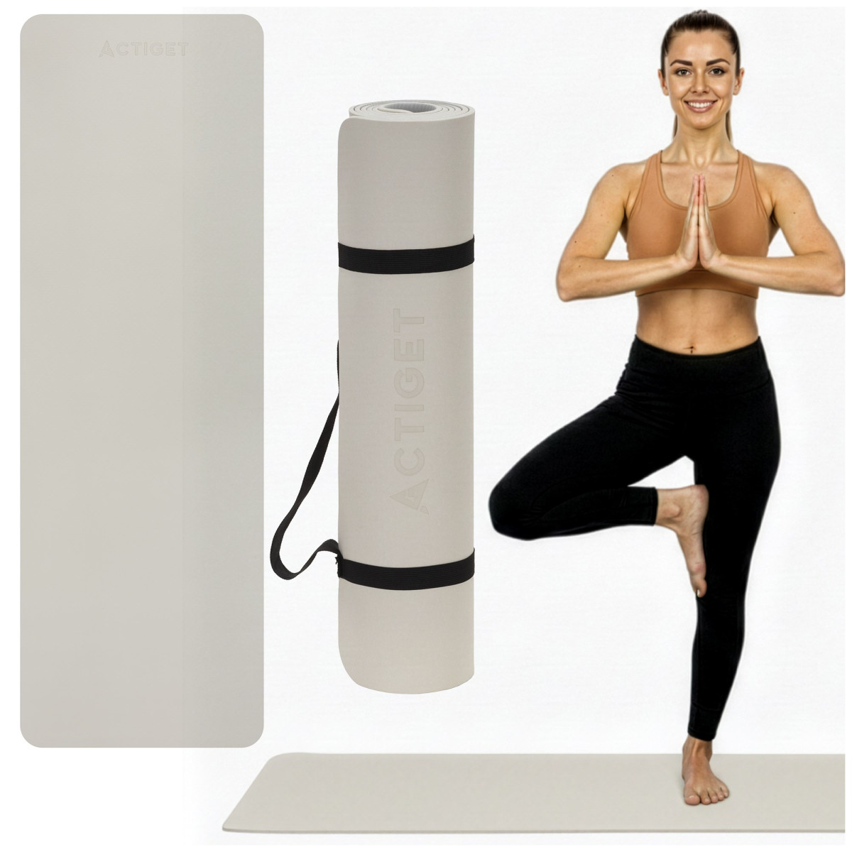 Produktas turi Actiget® logotipą. Reguliuojamas diržas yra pritaikytas kilimėliui ir leidžia jį patogiai nešti. Komplekte yra elastinis kilimėlio diržas, skirtas patogiam transportavimui. Kilimėlis pagamintas iš TPE – kompaktiškas, stabilus ir patvarus. Matmenų paklaida: 2%.