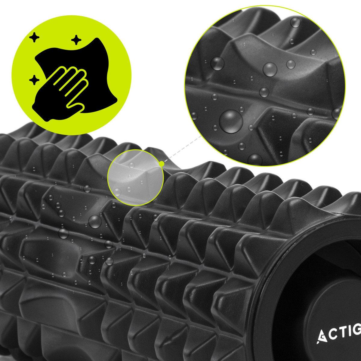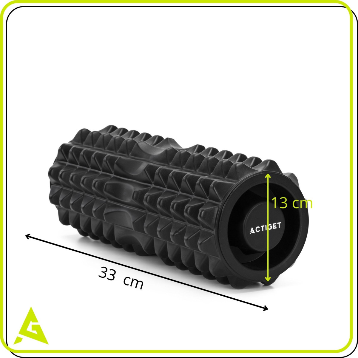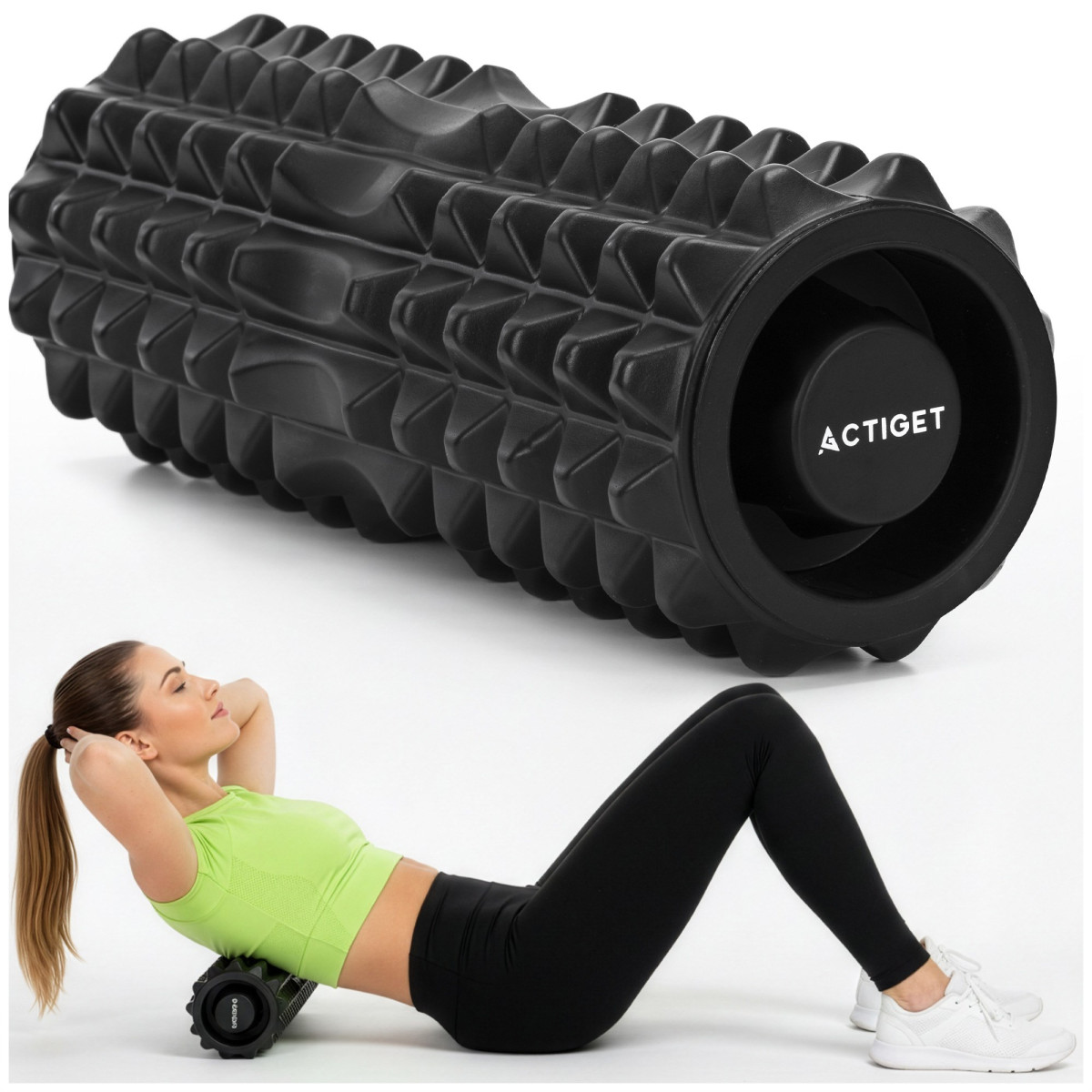 Prekės ženklas: Actiget® Serija: universali serija Spalva: juoda Medžiaga: EVA putos, PVC Svoris: 695 g Maksimalus naudotojo svoris: 100 kg Vidutinio kietumo volas (55° Shore A) Matmenys: Ilgis: 33 cm Išorinis skersmuo: 13 cm Vidinis skersmuo: 8 cm Putų storis: 2 cm Papildoma informacija: Produktas pažymėtas Actiget® logotipu Volas turi nuimamus vidinius įdėklus