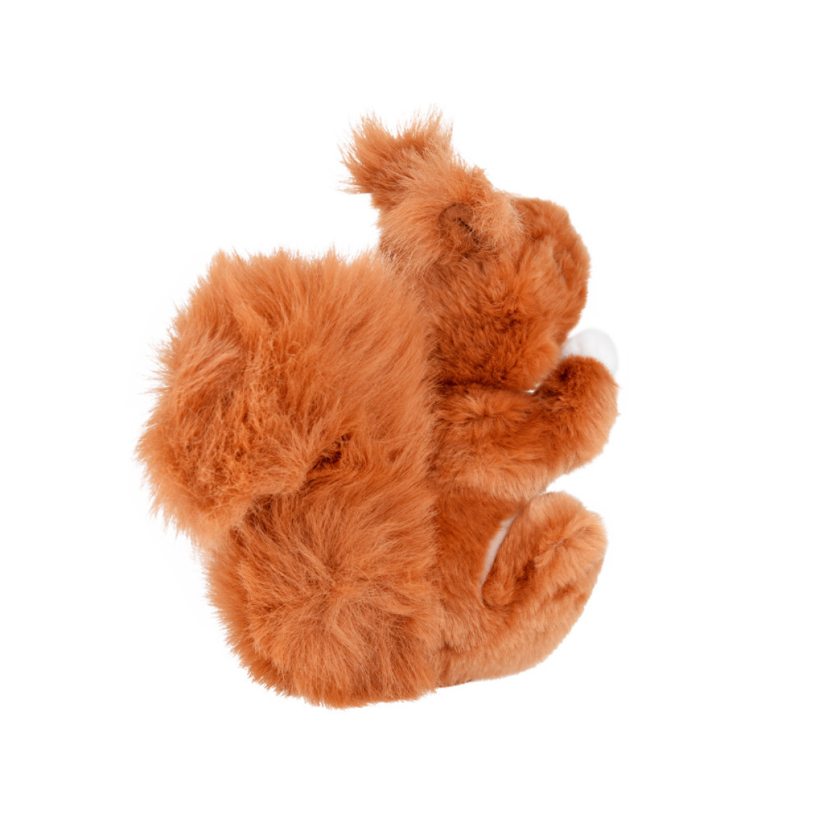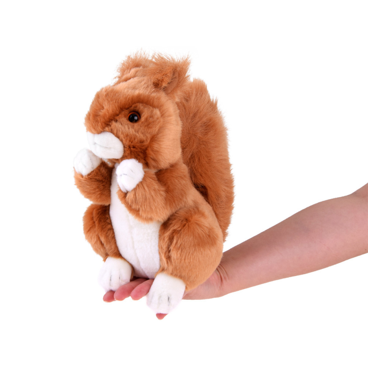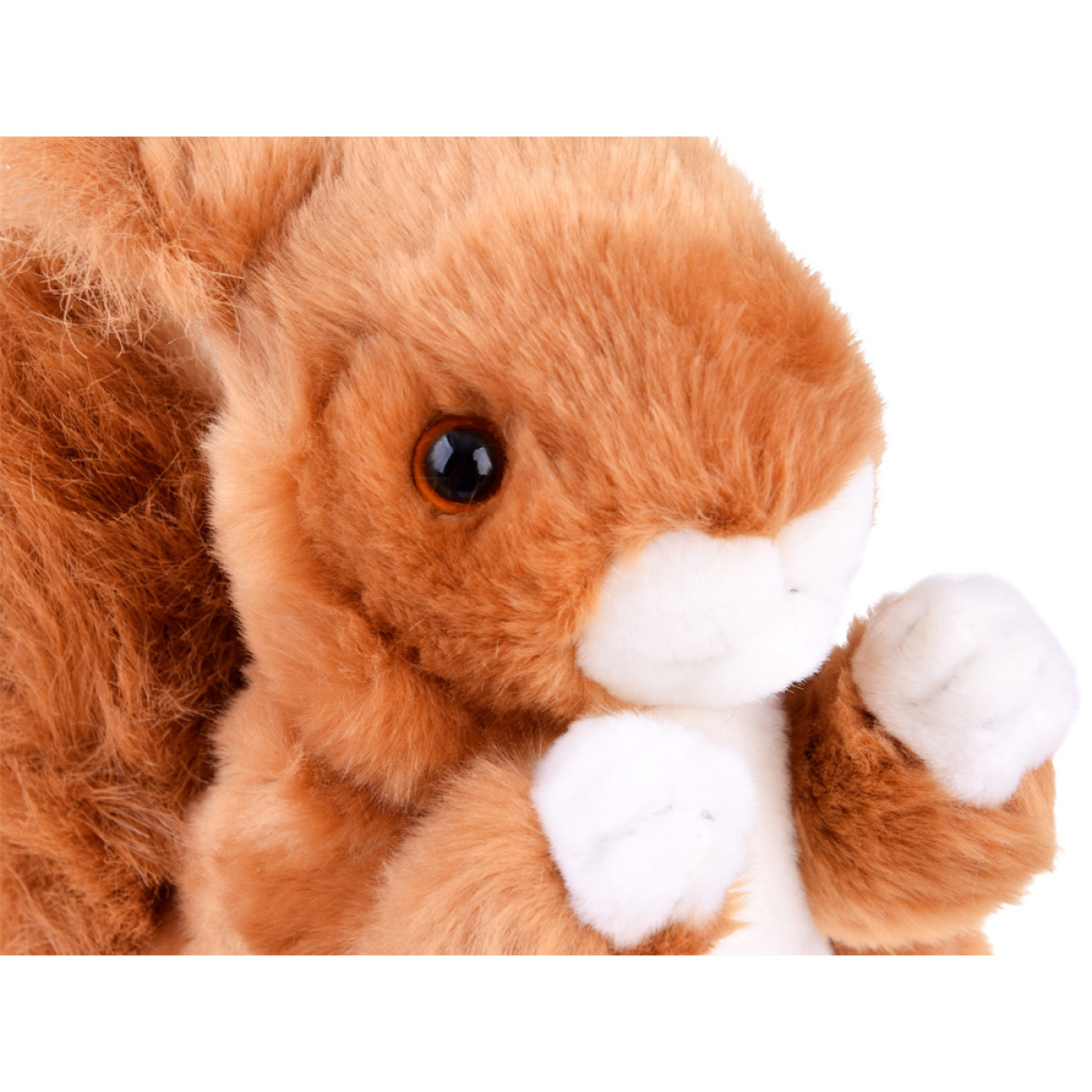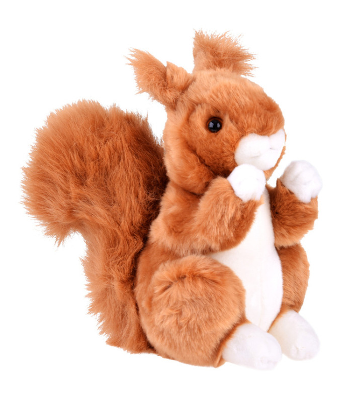 Ši voverės pliušinė žaislinė pagaminta iš maloniai minkštos medžiagos. Dėmesį traukia jos puri, ruda uodega ir blizgios plastikinės akys.