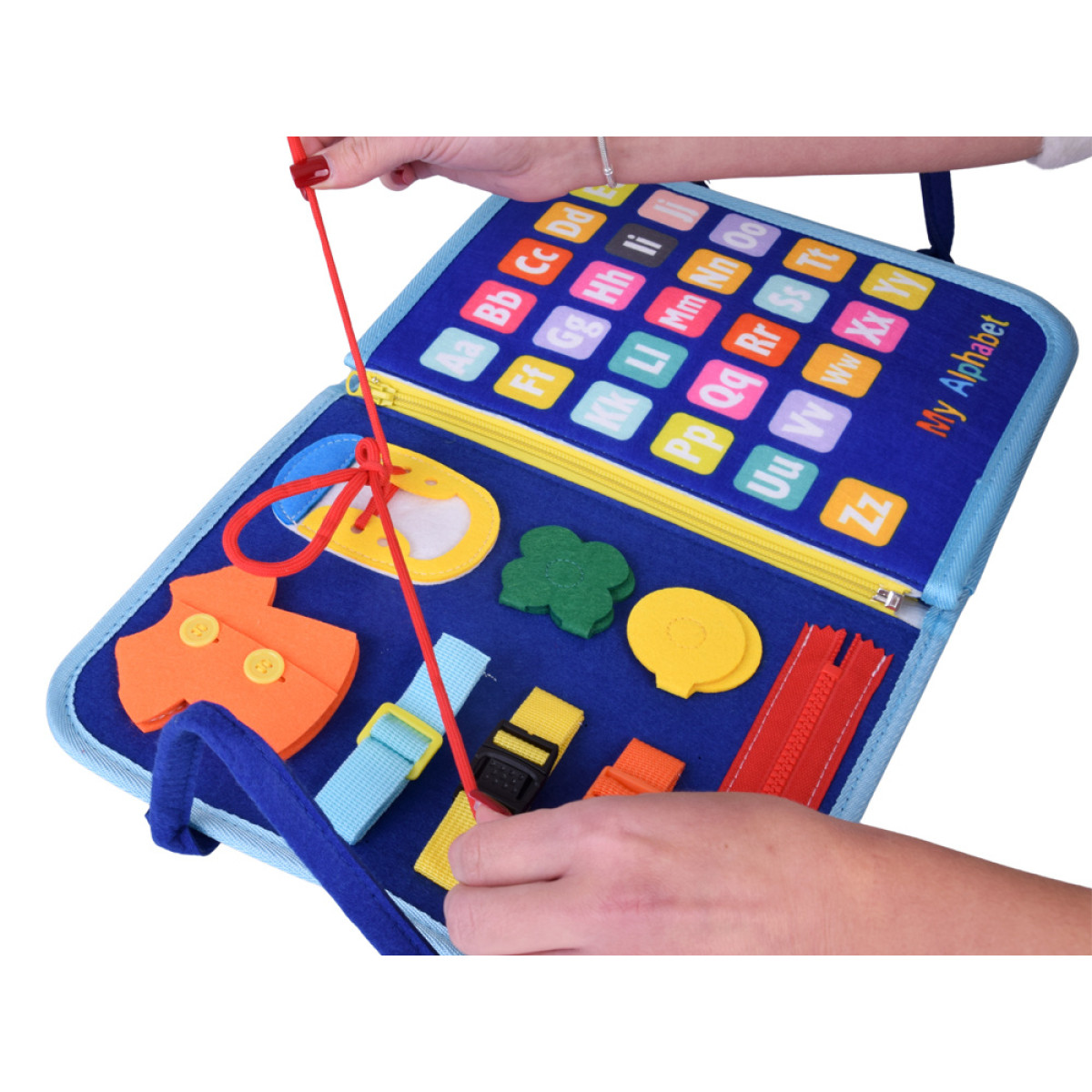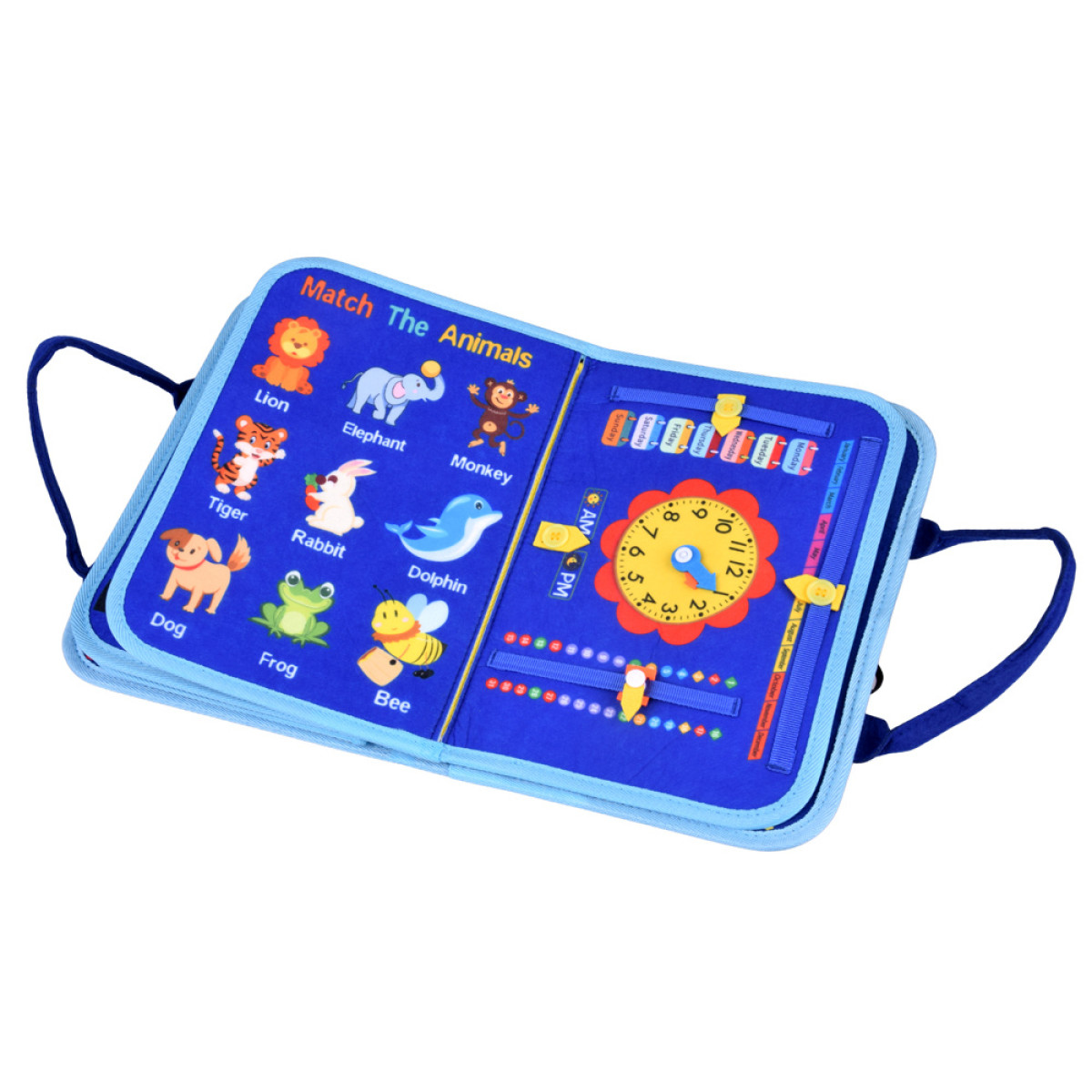 Knygelė pagaminta iš minkštų, saugių medžiagų ir suprojektuota taip, kad augtų kartu su vaiku. Tai idealus edukacinis dovana mažyliams, skatinanti mokymąsi per žaidimą Montessori dvasia.