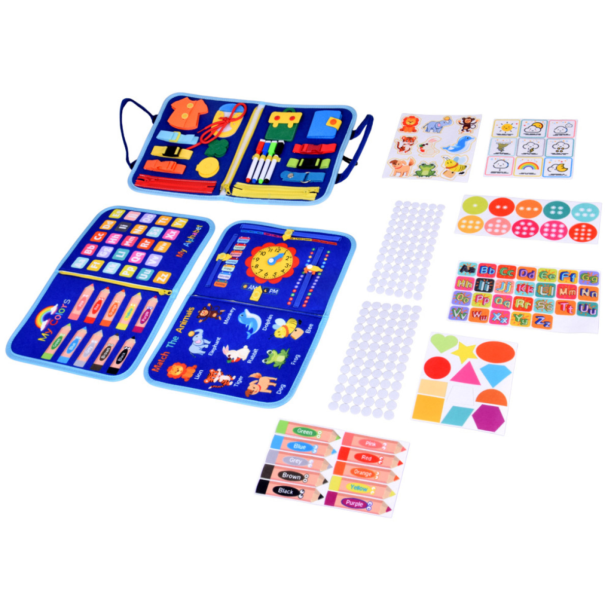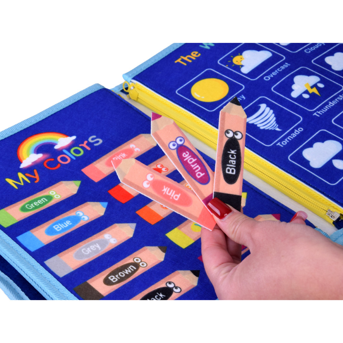 Medžiaginė manipuliacinė edukacinė knygelė + lentelė su žymekliais ZA6024