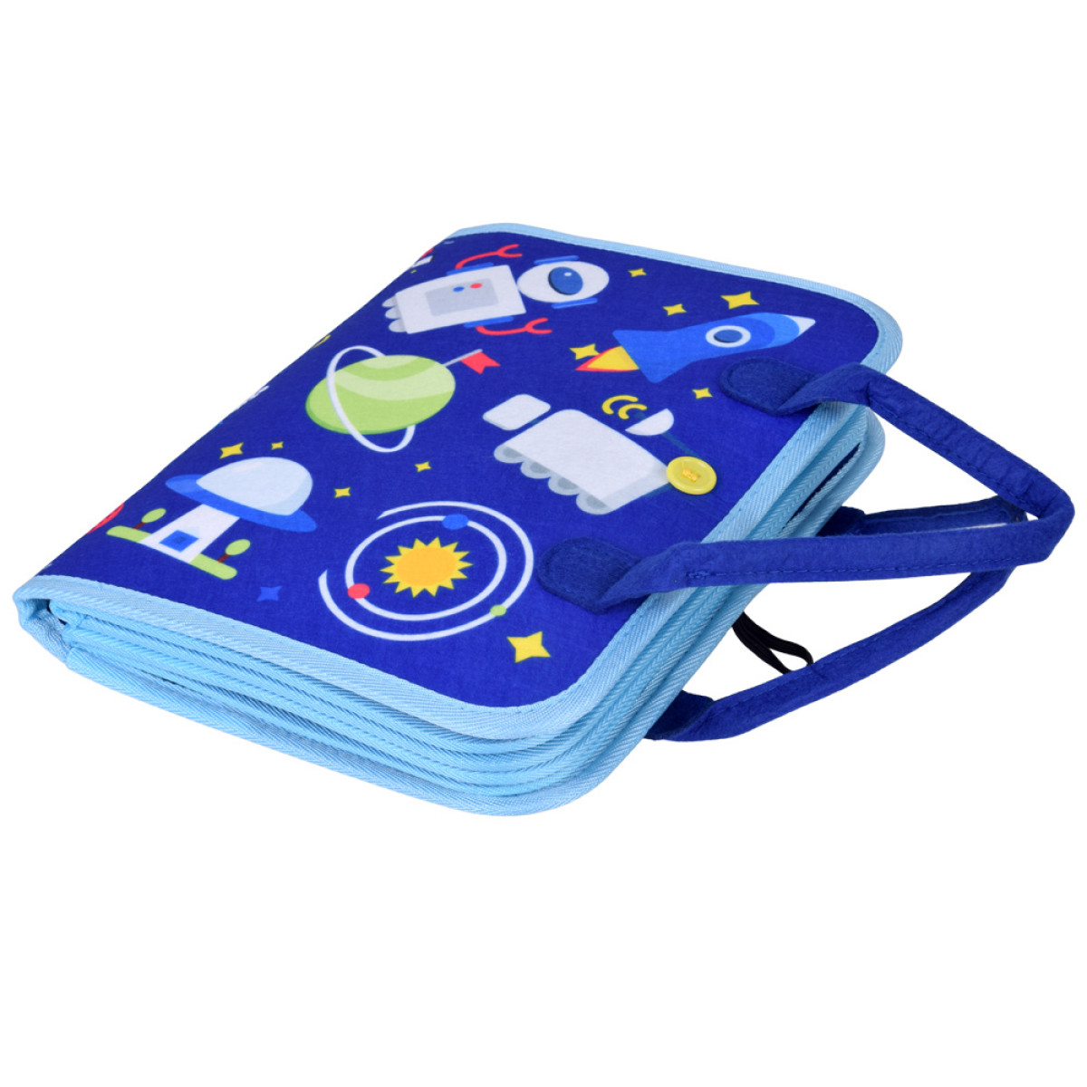 Filco aktyvinanti knygelė siūlo net 10 puslapių fantastiško žaidimo! Atrask neįprastą edukacinę knygelę, kuri skatina vaiko vystymąsi per žaidimą. Mūsų sensorinė knygelė turi 10 puslapių, pilnų spalvingų, judančių elementų, kurie įtraukia jusles, lavina smulkiąją motoriką ir mokina savarankiškumo. Knygelė yra uždarytos dėžutės formos su patogiais rankenėlėmis, užsegama elastine juosta ir mygtuku. Dėka užtrauktuko, vidinius puslapius galima lengvai išimti ir žaisti atskirai – tai idealus sprendimas namuose, kelionėje ir pasivaikščiojimuose. Viršelį puošia fantastiška grafika kosminėje tematikoje.