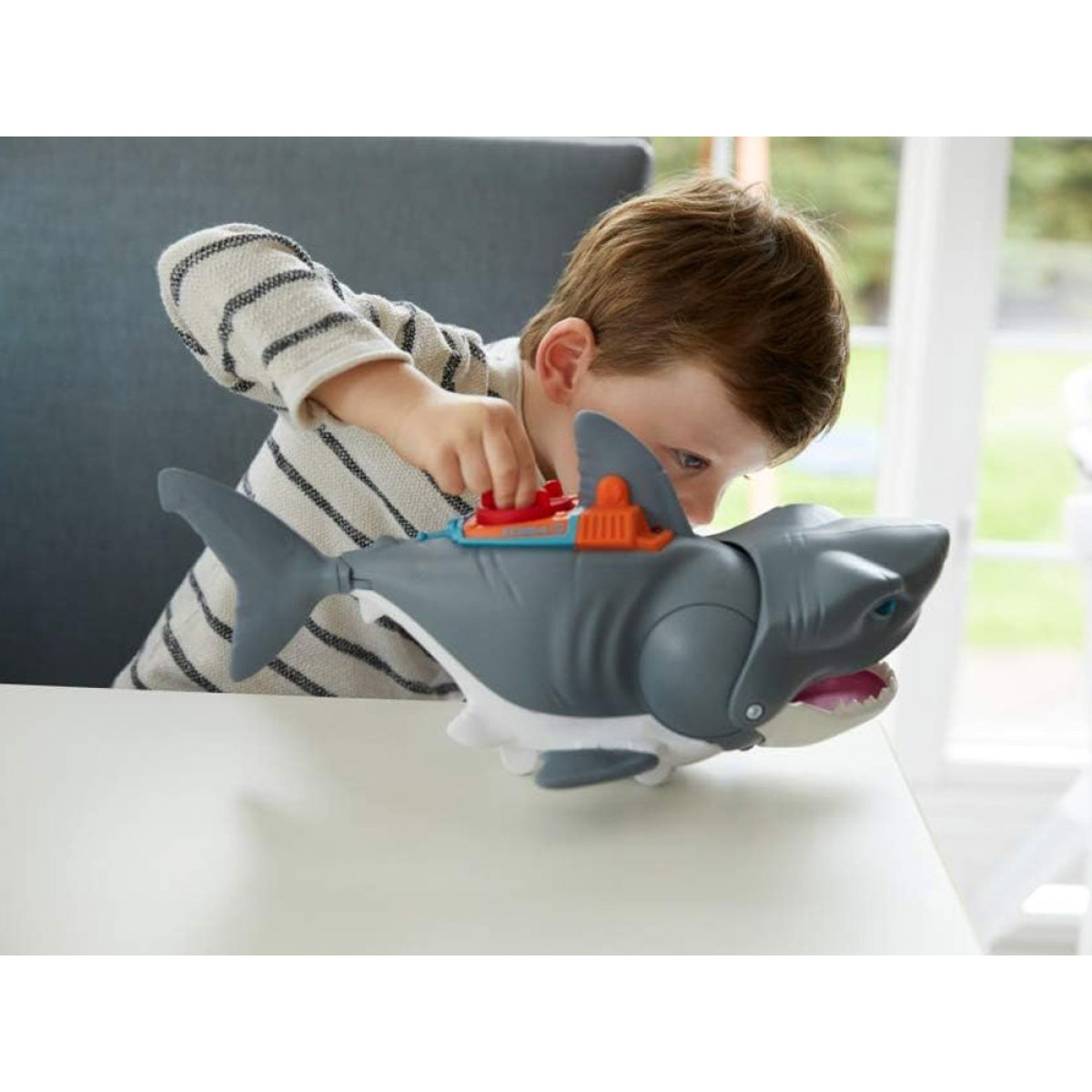 Rekino Megaskandis yra didžiulis plėšrūnas, kuris gali praryti narą visą! Atraskite povandeninį pasaulį su žaisliniu rekino. Stumkite jį, kad atliktų realistiškus „plaukimo“ judesius ir kliautų didžiulę nasrą. Stebėkite, kaip plėšrūnas „suėda“ narą, o tada ištraukite figūrėlę per atgalinį žaislo angą.