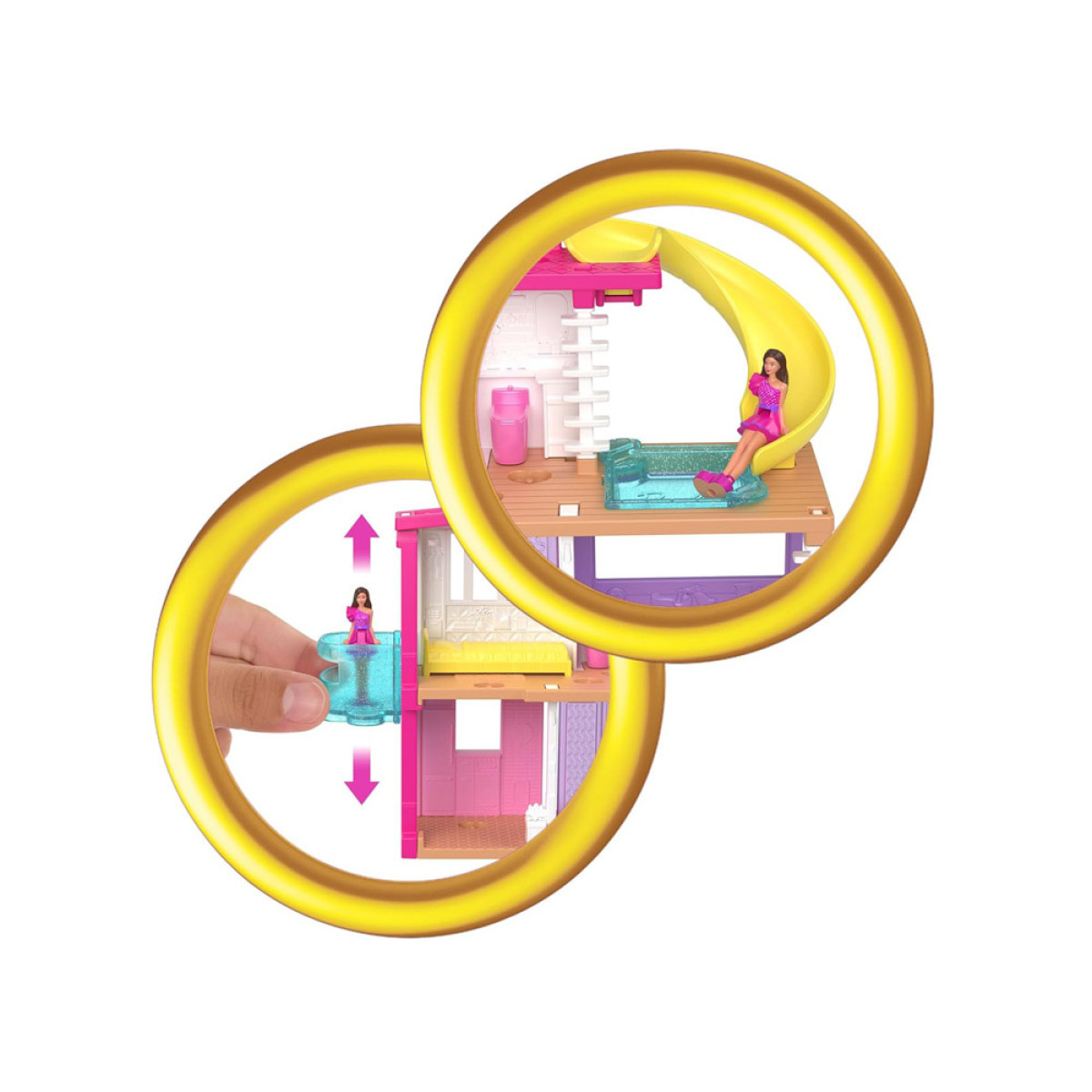 Vila taip pat turi liftą ir baseiną su čiuožykla. Ji turi viską, kad Barbie jaustųsi patogiai. Kokia lėlė gyvens šiame nuostabiame name? Tai bus staigmena!