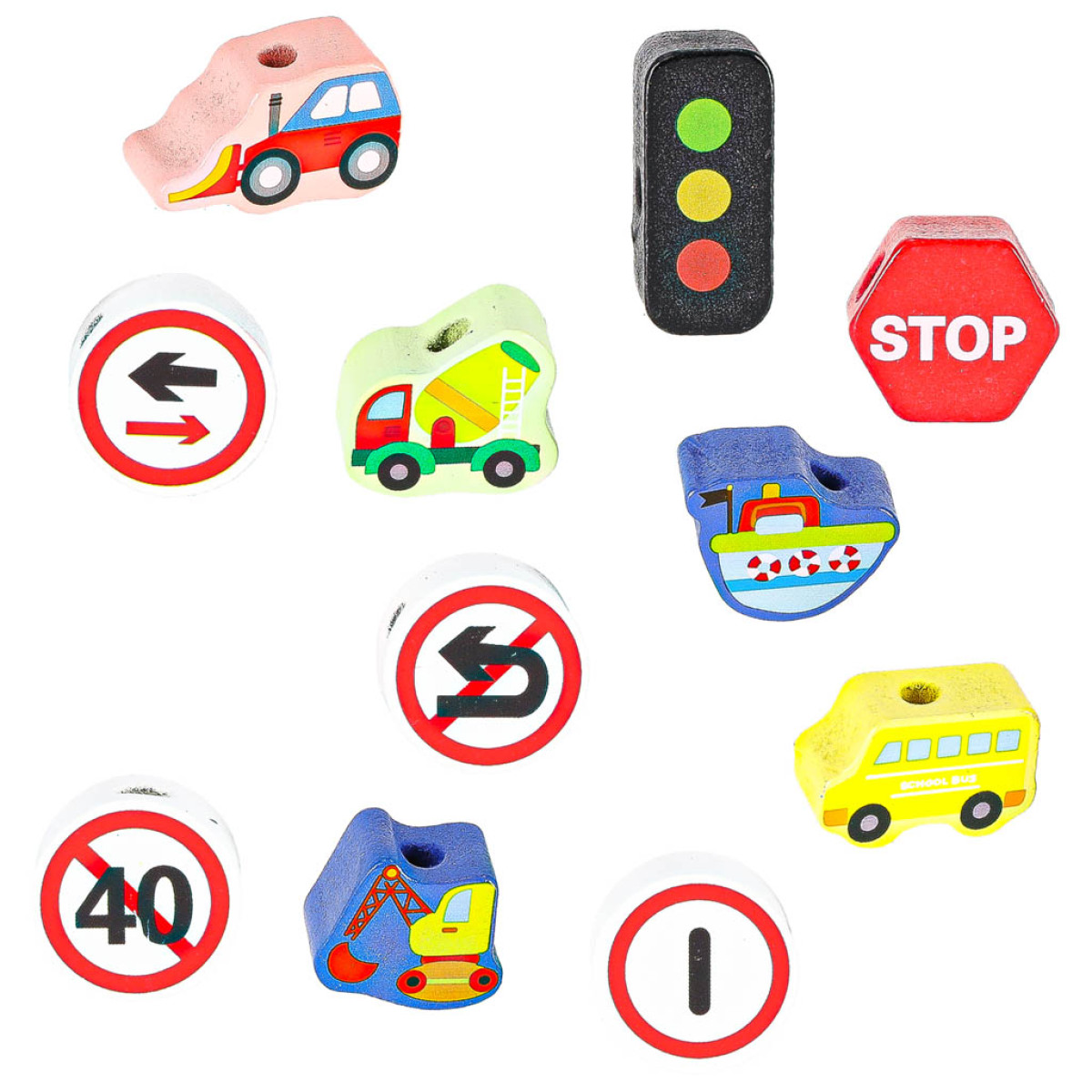 - 23 medinės kaladėlės (transporto priemonės, kelio ženklai)
