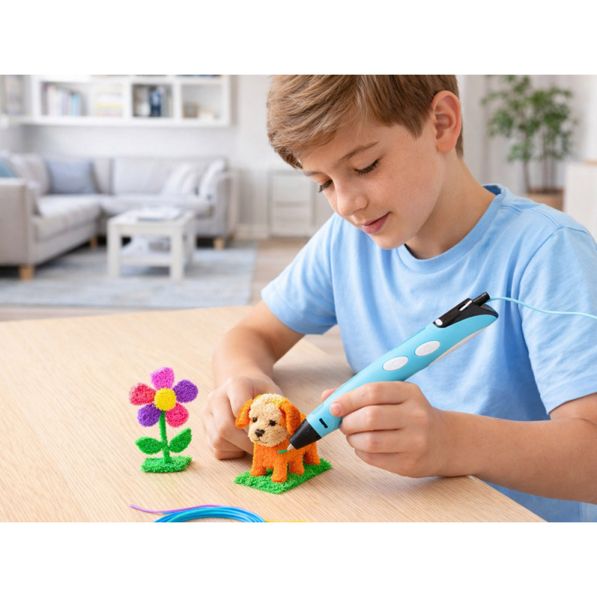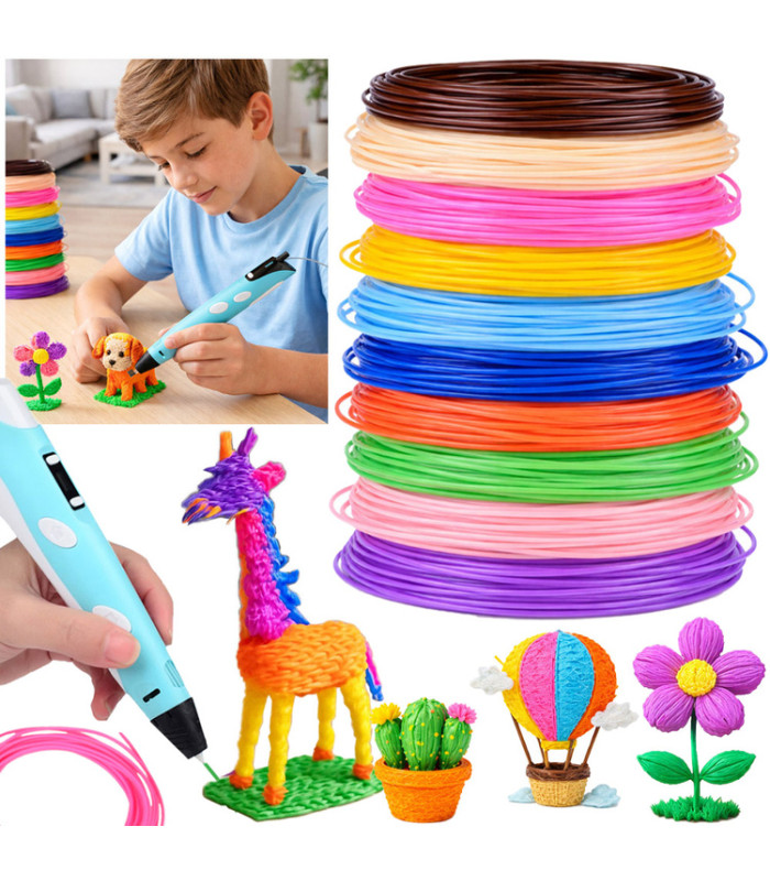 pcl papildymai yra saugūs naudoti ir lydosi žemoje temperatūroje, todėl puikiai tinka ir vaikams. Kiekvienos spalvos ilgis yra apie 5 metrai, tad bendras rinkinio ilgis siekia 50 metrų. Tai suteikia daugiau laisvės piešti erdvinius objektus, kurti modelius ir įgyvendinti įvairias idėjas.