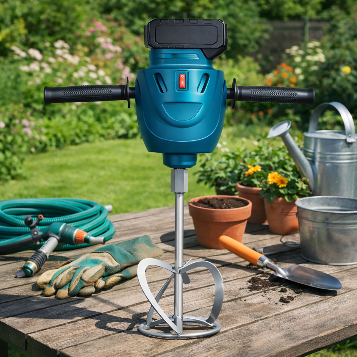 Akumuliatorinis žemės maišytuvas-gręžtuvas su 2 baterijomis