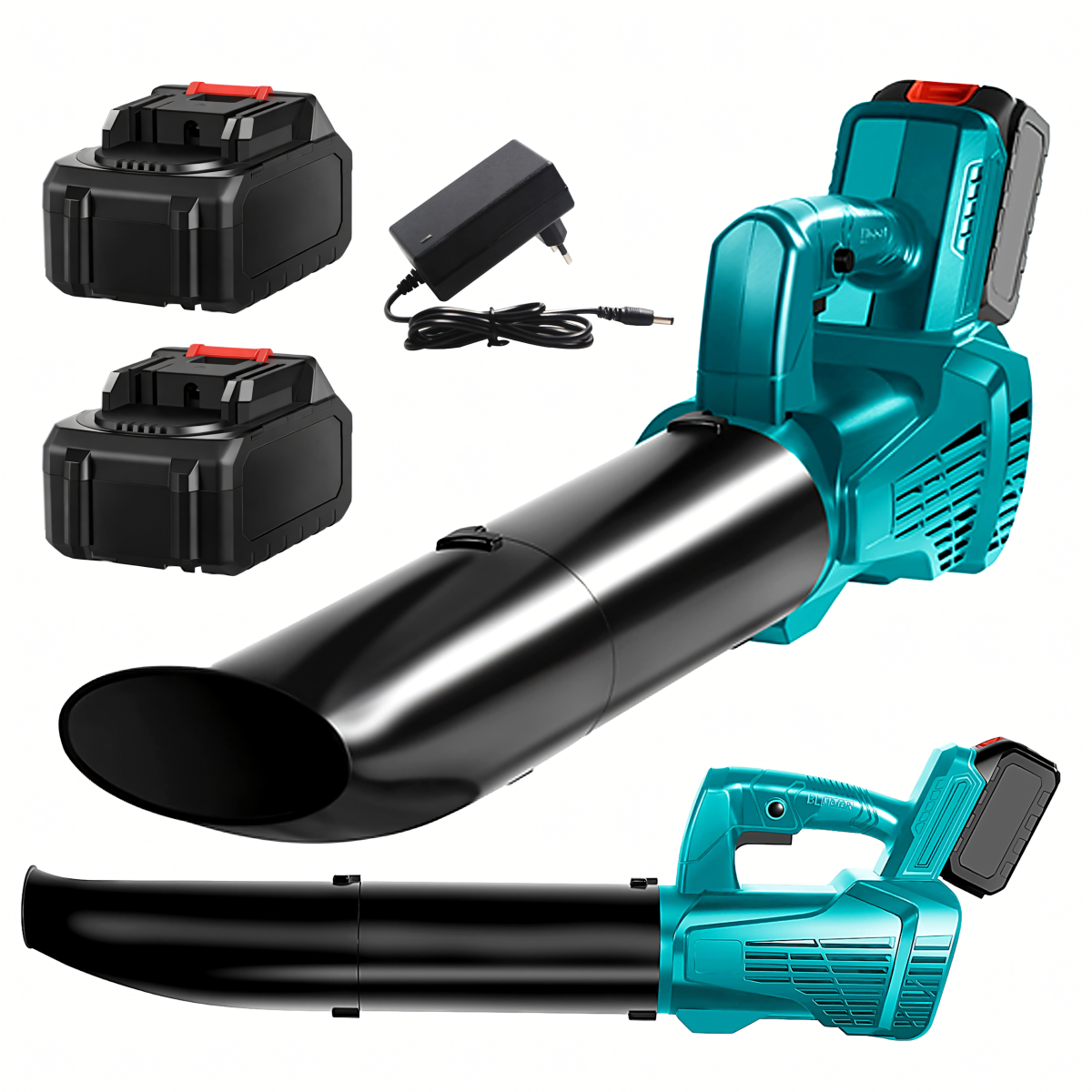 Galingas akumuliatorinis lapų pūstuvas skirtas sodui ir sniego džiovinimui, komplekte yra 2 akumuliatoriai.