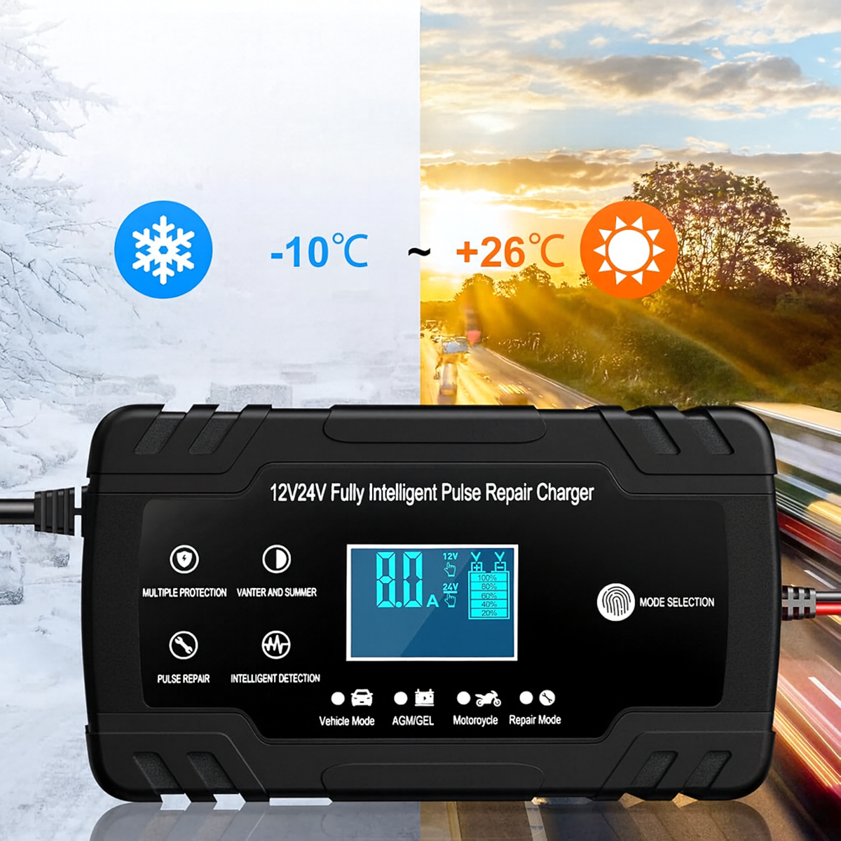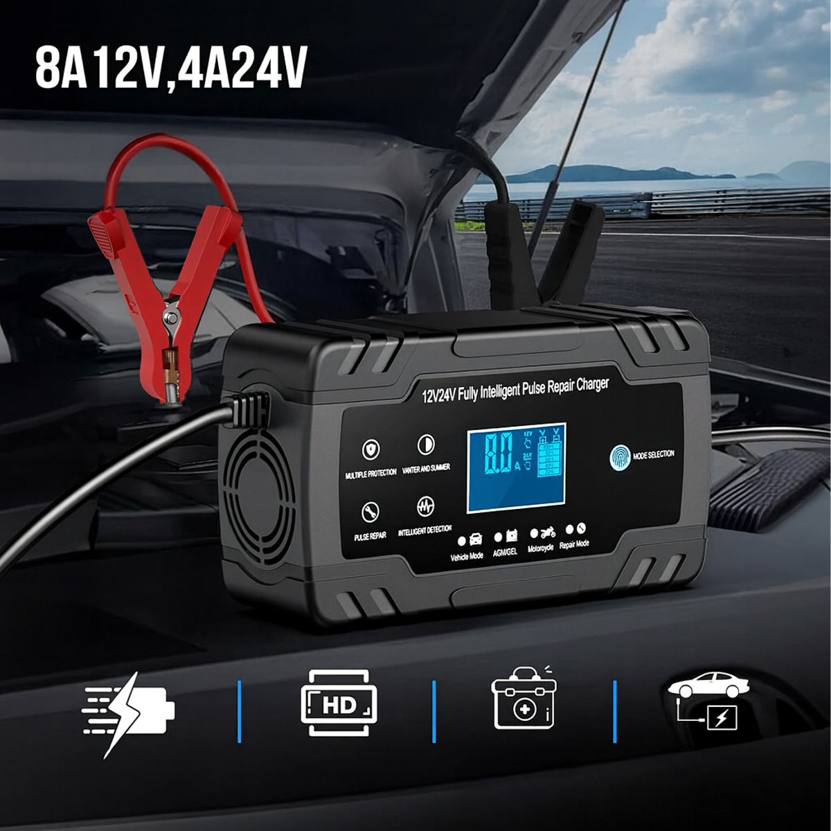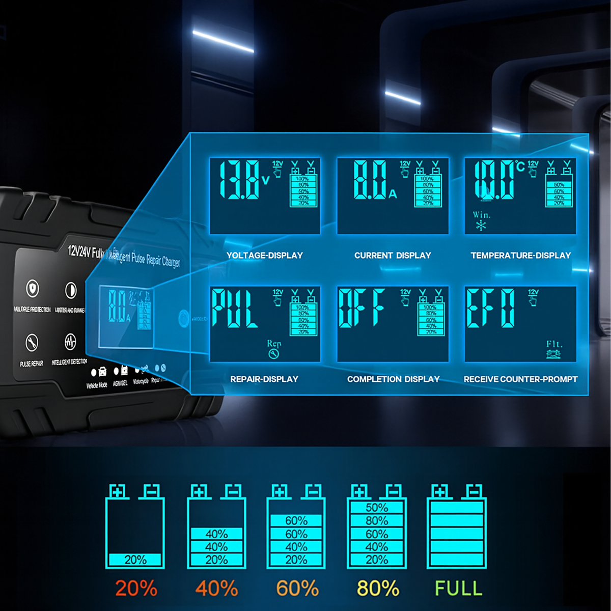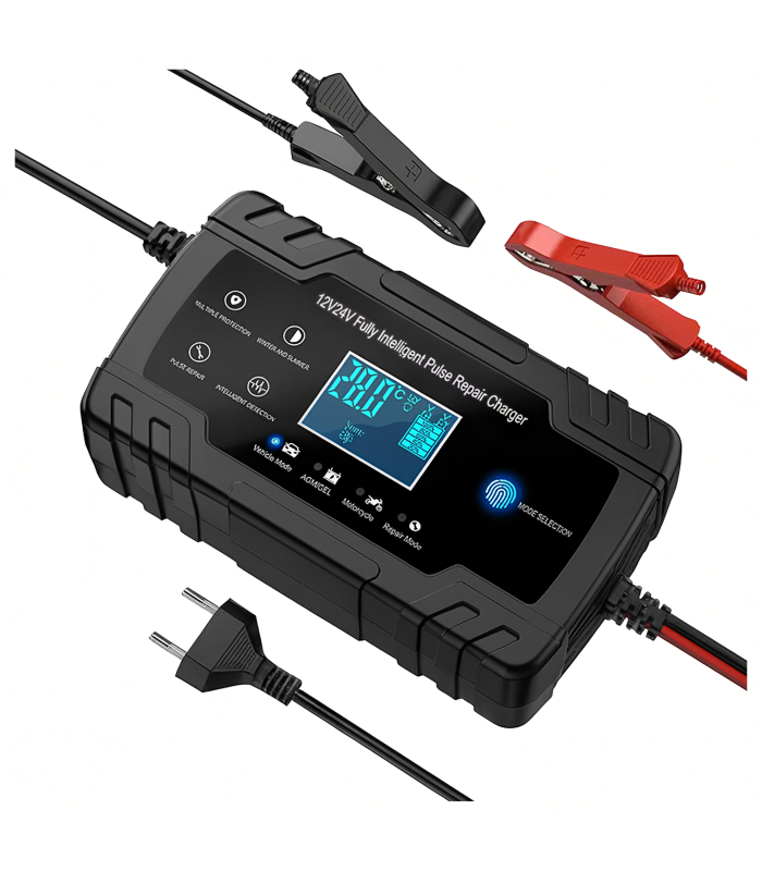 Šiuolaikinis mikroprocesorinis įkroviklis akumuliatoriams, kuris puikiai tinka tiek profesionalioje dirbtuvėje, tiek namų garaže. Dėl automatinio veikimo režimų ir išmaniųjų apsaugų jis užtikrina greitą, saugų ir efektyvų automobilių, motociklų, gelinių, AGM ir daugelio kitų akumuliatorių įkrovimą.