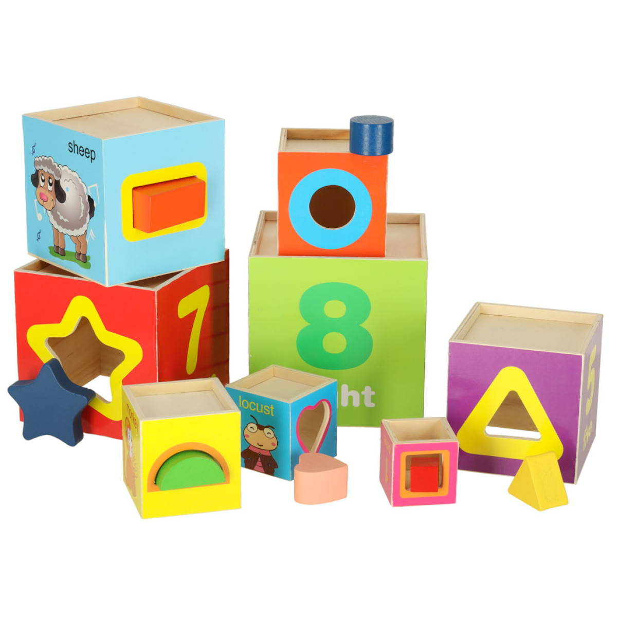- Žaidimas ir mokymasis viename - vaikas mokosi žaisdamas, patirdamas ir tyrinėdamas. Medinės kaladėlės idealiai tinka formų ir spalvų mokymuisi