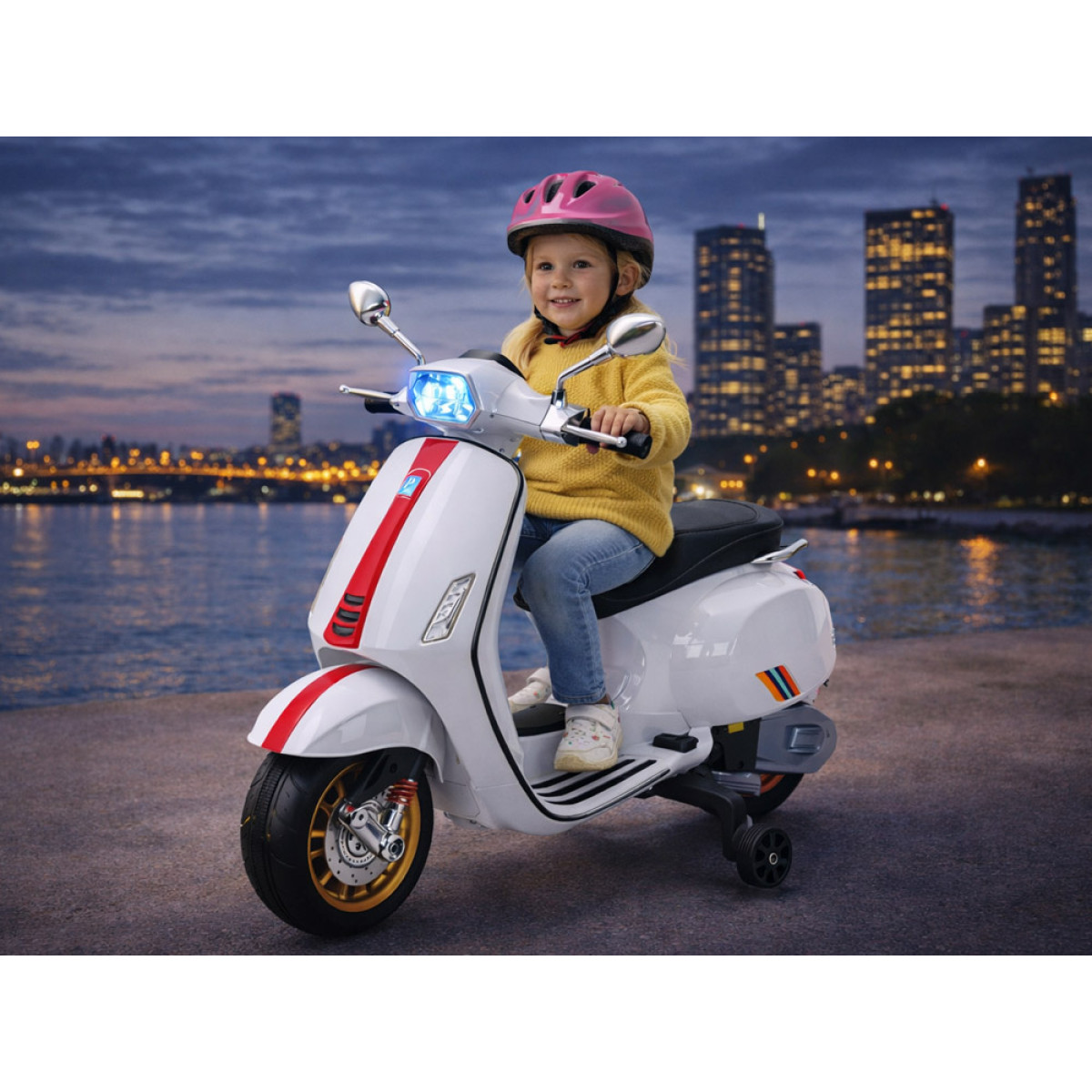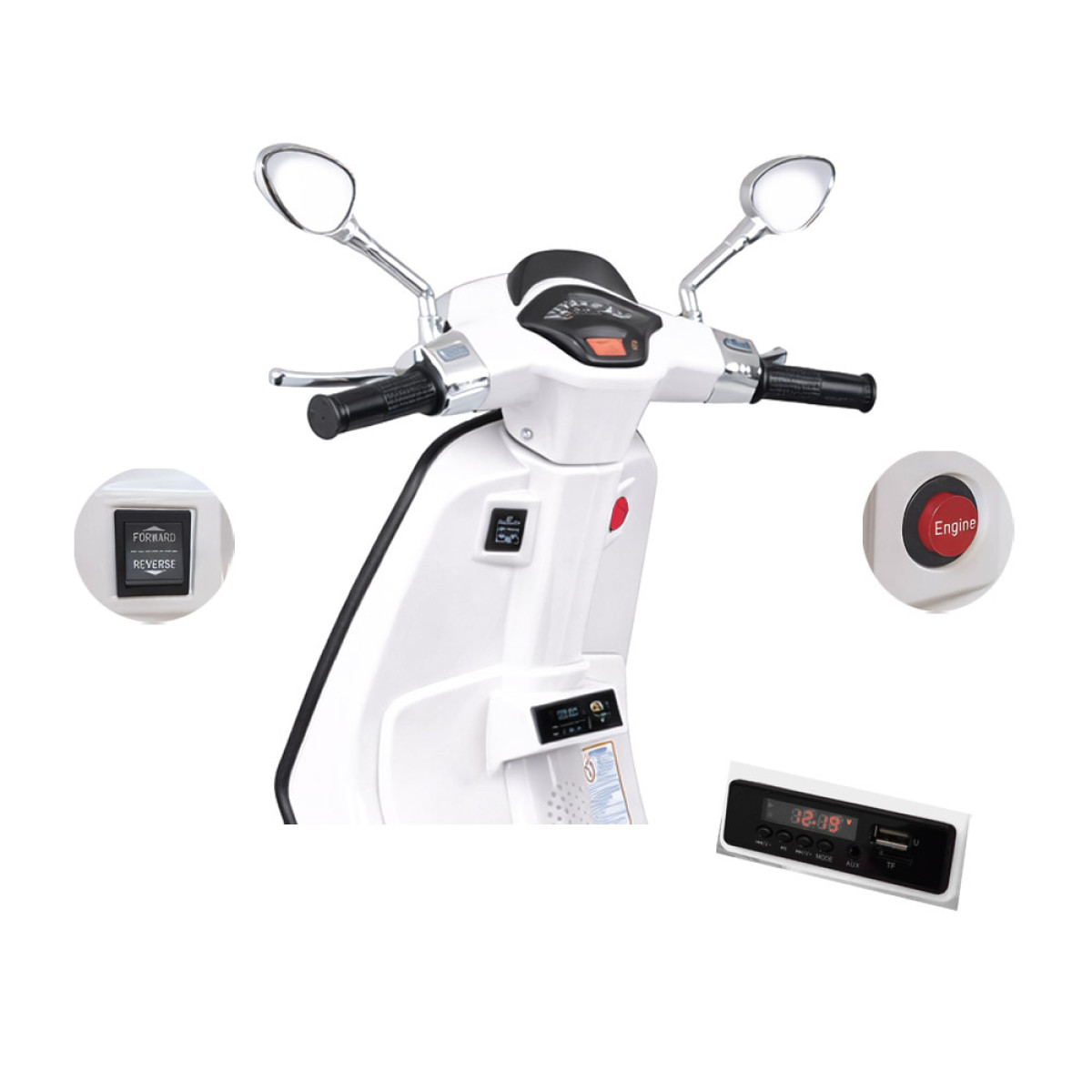 Išpildykite vaiko svajonę apie nuosavą motorolerį ir padovanokite daug džiaugsmo važinėjant legendiniu vespa stiliumi. Šis elektrinis motoroleris vaikams sujungia elegantišką dizainą, šiuolaikines funkcijas ir tikroviškus efektus, todėl žaidimai tampa dar įdomesni.