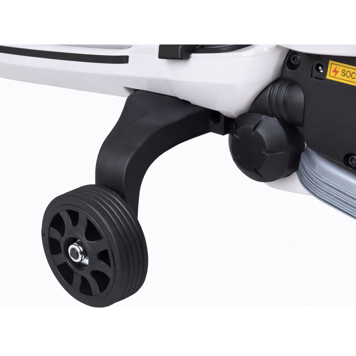 Saugumas ir patogumas čia dera tarpusavyje. Elektrinis stabdis įsijungia automatiškai, kai koja nuimama nuo akceleratoriaus pedalo, todėl vaikas gali lengvai kontroliuoti važiavimą. Papildomi šoniniai pagalbiniai ratukai suteikia daugiau stabilumo ir saugumo. Tai puikus pasirinkimas mažesniems vaikams, kurie dar tik mokosi važiuoti.