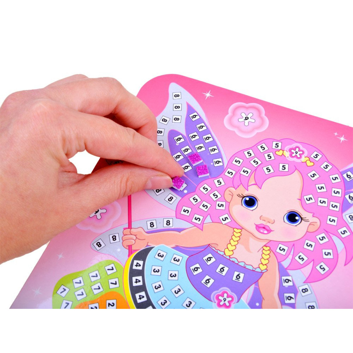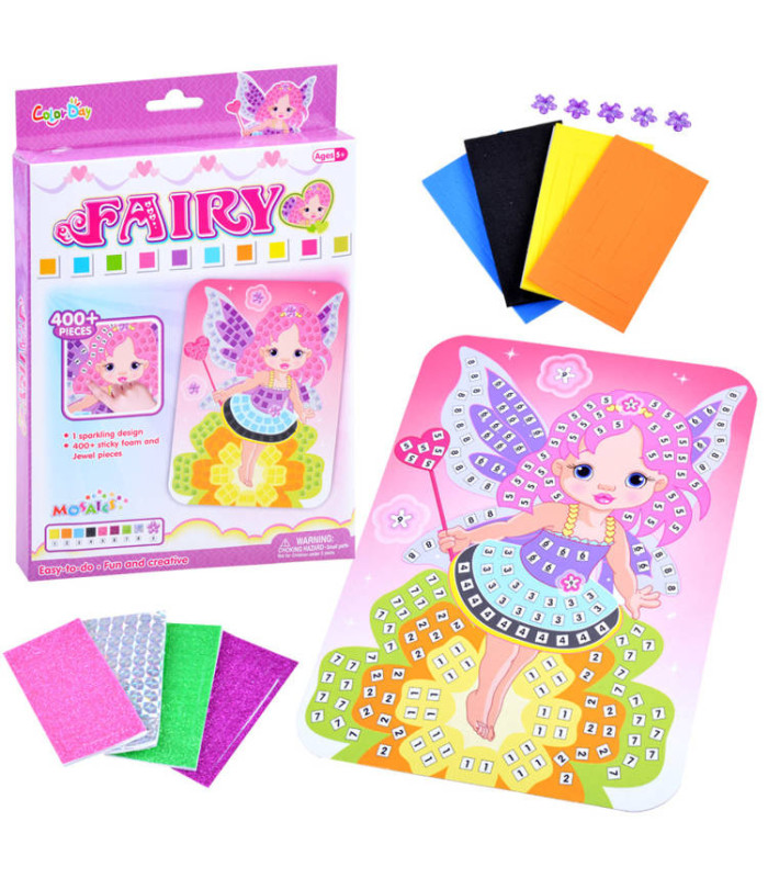 Šis kūrybinis mozaikos rinkinys su fėja yra puikus pasirinkimas vaikams, mėgstantiems kūrybinius užsiėmimus. Rinkinį sudaro spalvingas paveikslėlis, kurį reikia dekoruoti putplasčio kvadratėliais, pritaikant spalvas ir formas.