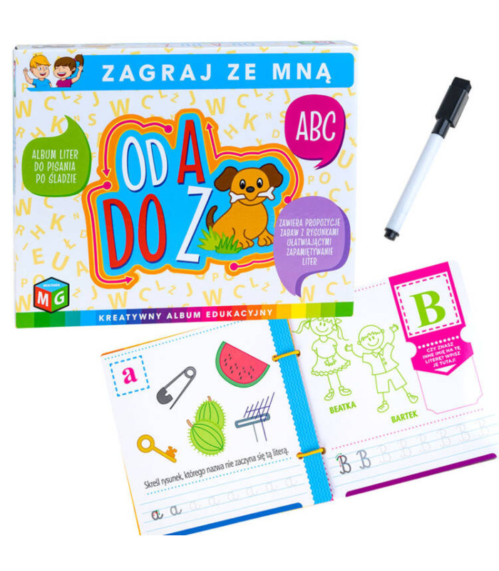 Nuo A iki Ž - tai kūrybiškas albumas, kuris leis jūsų vaikui per smagų žaidimą pažinti raides ir praktikuoti rašymo įgūdžius. Albumas turi linksmus piešinius ir žaidimų pasiūlymus su iliustracijomis, kurie padės įsiminti raides. Be to, kiekvienai raidei skirta vieta rašymui iš mokymui.