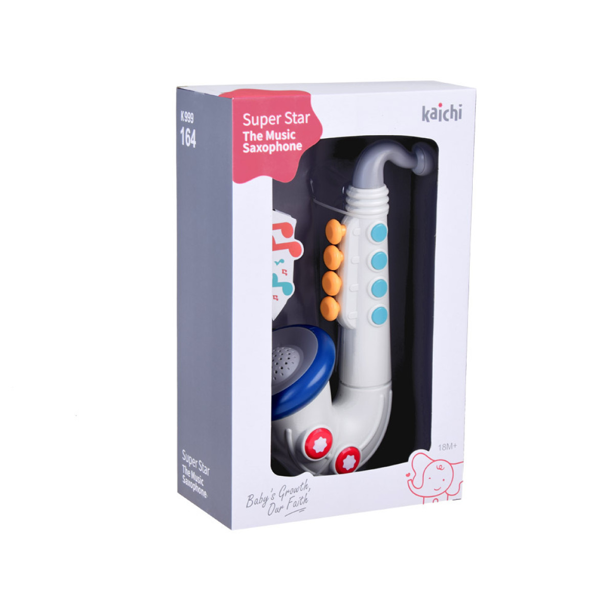 - Įrašytos melodijos: saksofonas turi įrašytas melodijas ir aktyvius klavišus, leidžiančius vaikui pajusti tikro džiazo atlikėjo atmosferą.