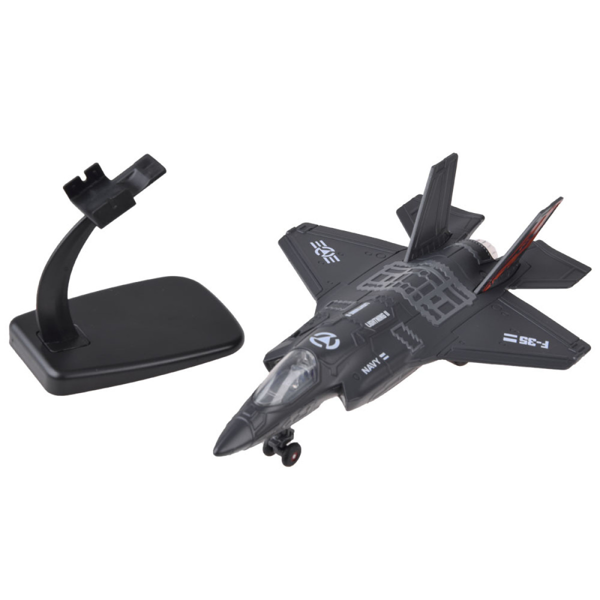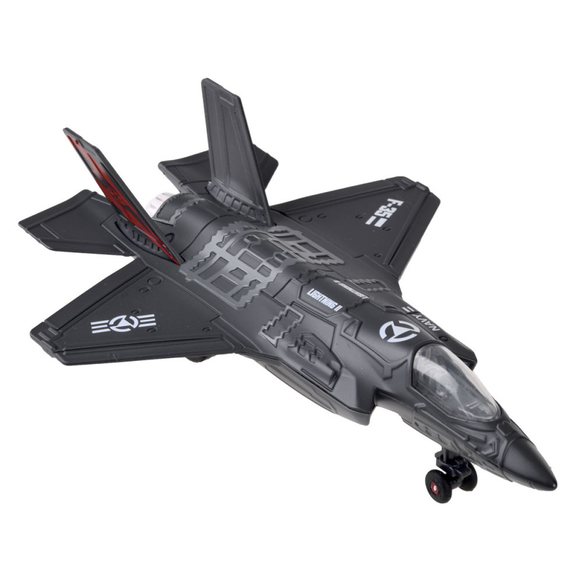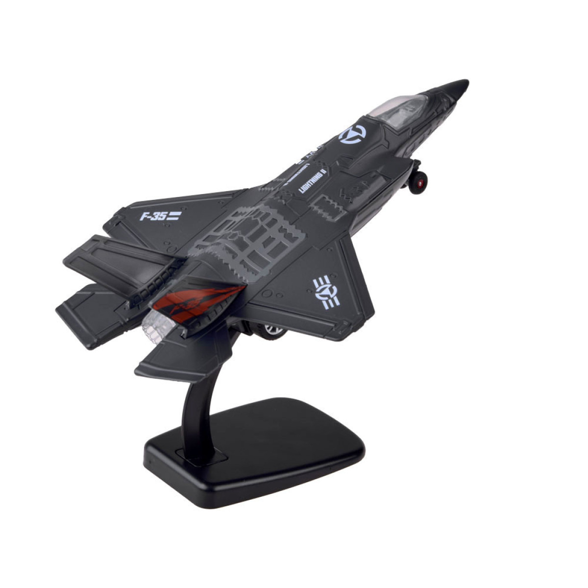 Šis kovinis lėktuvo modelis tikrai sužavės kiekvieną mažą aviacijos ir karinių žaidimų gerbėją. Lėktuvas pagamintas iš aukštos kokybės medžiagų, atkreipiant dėmesį į detales. Daugiausia lėktuvo korpusas pagamintas iš metalo, kas užtikrina žaislo ilgaamžiškumą ir patvarumą. F-35 turi pull back mechanizmą – traukiant žaislą atgal, jis važiuos į priekį. Prislėgus lėktuvą prie žemės, įsijungia variklių garsai, šūvių ir oro mūšių garsai bei piloto kabinos apšvietimas.