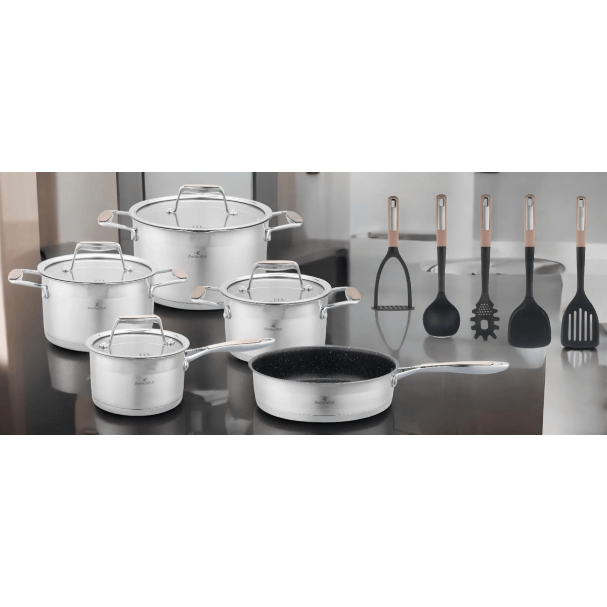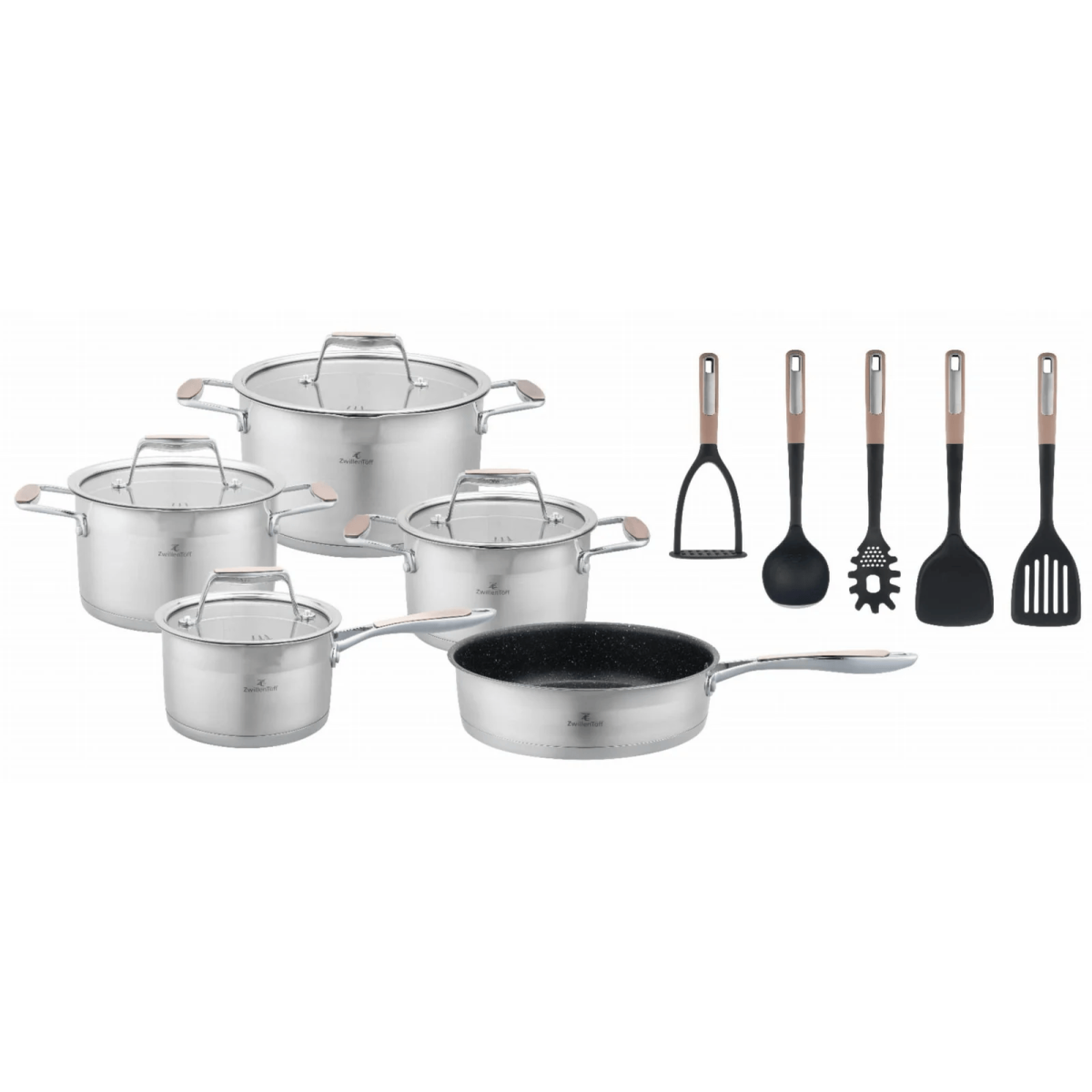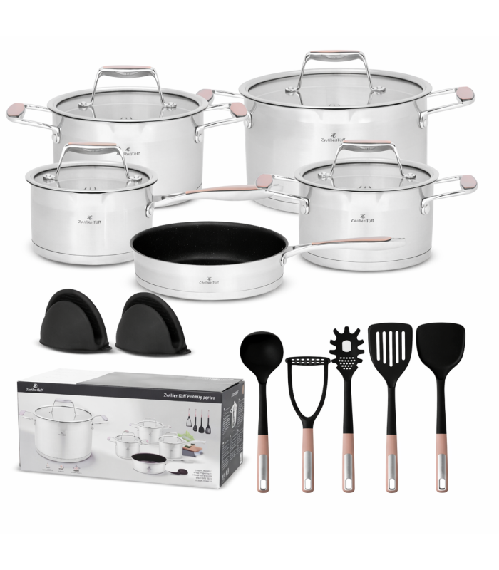 16 dalių nerūdijančio plieno puodų rinkinys su keptuve ir virtuvės įrankiais, ZWILLENTOFF ZT-33252