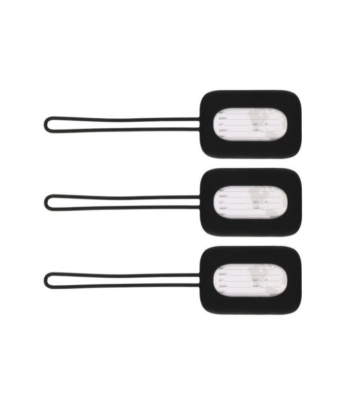 Bagažo etiketė padeda atskirti savo krepšį nuo kitų krepšių. Ant etiketės užrašykite savo kontaktinius duomenis, kad pametus krepšį, su jumis būtų galima susisiekti naudojant šiuos kontaktinius duomenis. Pakuotėje yra trys silikoninės vardo etiketės.