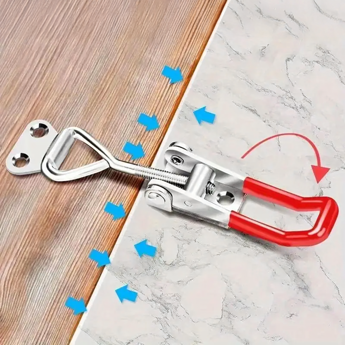Patikimas ir tvirtas spaustukas yra nepakeičiamas aksesuaras jungiant ir užrakinant įvairius elementus – nuo stalo paviršių iki transportavimo dėžių. Dėl reguliuojamo ilgio užsegimo ir gumuotos rankenos jis užtikrina stabilų, saugų ir patikimą uždarymą.