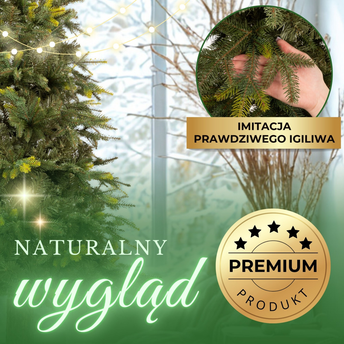 Pagrindiniai duomenys: Prekės ženklas: Springos® Medžio rūšis: natūralus eglės kamienas Bendras aukštis (matuojamas nuo žemės): 150 cm Spyglio medžiaga: ekologiška plėvelė, PE Spyglio spalva: žalia Krona: Žalios dalies aukštis (matuojamas nuo kamieno): 92 cm Didžiausias plotis (plačiausioje vietoje): apie 73 cm Plotis maždaug 1 m aukštyje: apie 52 cm Lygmenų skaičius: 7 Šakų skaičius: 22 Spyglio galiukų skaičius: 210 Galiuko plotis: 3 cm Atstumas nuo žemės iki kronos: apie 73 cm Šakų galiukai: smailūs Krona susideda iš 1 dalies Kamienas: Kamieno ilgis: 65 cm Kamieno storis/diametras: apie 6 cm Natūralus kamienas, gali turėti dervos ir šakelių žymes. Diametras gali šiek tiek skirtis dėl natūralios medžiagos. Stovas: Medžiaga: plastikas Tipas: trijų kojų Spalva: žalia Aukštis: 9,5 cm Vienos kojos ilgis: 22 cm Atstumas tarp kojų (matavimas galiniuose taškuose): 42 cm Papildoma informacija: Pakuotės matmenys: 100x20x20 cm Produktas skirtas savarankiškam surinkimui Dvikrūvė plėvelė: žalia ir ruda, imituojanti tikrą šakelę Itin realistiška išvaizda Svarbu: norint pasiekti gerą efektą, šakas reikia kruopščiai išdėlioti ir formuoti Į komplektą įeina džiutas stovui užmaskuoti Surinkimo instrukcija prieinama elektroniniu būdu QR kodo pavidalu ant pakuotės