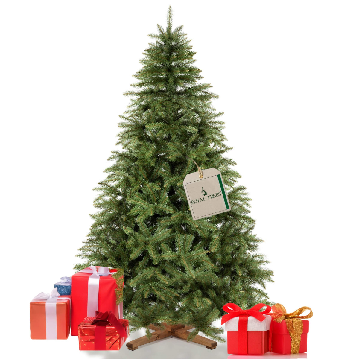 Pagrindiniai duomenys: Prekės ženklas: Royal Trees® Eglės tipas: Skandinaviška eglė Bendras aukštis (matuojant nuo žemės): 240 cm Spyglių medžiaga: ekologiška PVC plėvelė Spyglių spalva: žalia Stovo tipas: keturšakis Vainikas: Bendras aukštis (nuo žemės): 240 cm Maksimalus skersmuo (plačiausioje vietoje): apie 142 cm Skersmuo 1 m aukštyje: apie 108 cm Viršūnės ilgis: 30 cm Lygmenų skaičius: 17 + viršūnė Šakų skaičius: 68 „Tipsų“ skaičius: 1088 „Tipsų“ plotis (vienos šakelės): apie 3‑6 cm Atstumas nuo žemės iki vainiko pradžios: 26 cm Šakų galiukai: smailūs Vainiko dalių skaičius: 3 Stovas: Tipas: keturšakis Medžiaga: medis Spalva: ruda Aukštis (centras): 7,5 cm (+ 3 cm plastikinė mova) Koja aukštis: 3,5‑5 cm Vienos kojos ilgis: 30 cm Vienos kojos plotis: 5 cm Atstumas tarp kojų (matuojant galus): 43 cm Stovo skersmuo: 65 cm Maišas: Medžiaga: 100 % poliesteris Spalvos: žalia, raudona Siūtas langelis kortelei Vienpusis užtrauktukas Royal Trees® logotipas ant maišo Maišo matmenys: aukštis 40 cm, ilgis 125 cm, plotis 50 cm Langelio matmenys: 10 × 7 cm Rankenos: Viršutinės rankenos plotis: 2,5 cm Kilpos ilgis (nuo maišo paviršiaus iki viršūnės): apie 42 cm Bendra rankenos ilgis: apie 84 cm Šoninės rankenos plotis: 2,5 cm Šoninės rankenos ilgis: 20 cm Papildoma informacija: Pakuotės matmenys: 120 × 40 × 40 cm Produktas surenkamas savarankiškai Dviejų spalvų plėvelė: žalia ir ruda, imituojanti tikrą šaką Ultra realistiškas išvaizdos efektas Svarbu: siekiant geriausio rezultato, šakas reikia kruopščiai išskleisti ir suformuoti Matmenų tolerancija: ±2 % Konstrukcija sunki ir tvirta Šakos storos ir kupstos