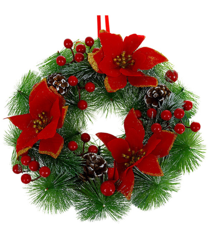 - Medžiaga: adatos: PVC, rėmas: putplastis + popierius, su dirbtiniais šermukšniais, kankorėžiais ir žiedais