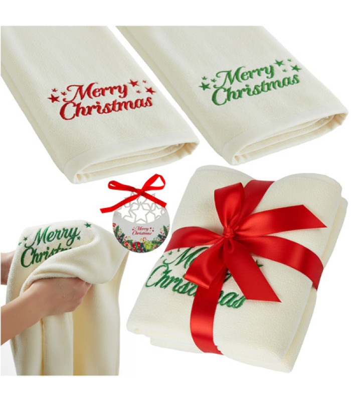 - 2 kalėdiniai rankšluosčiai - Balta su išsiuvinėtu užrašu „Linksmų Kalėdų“