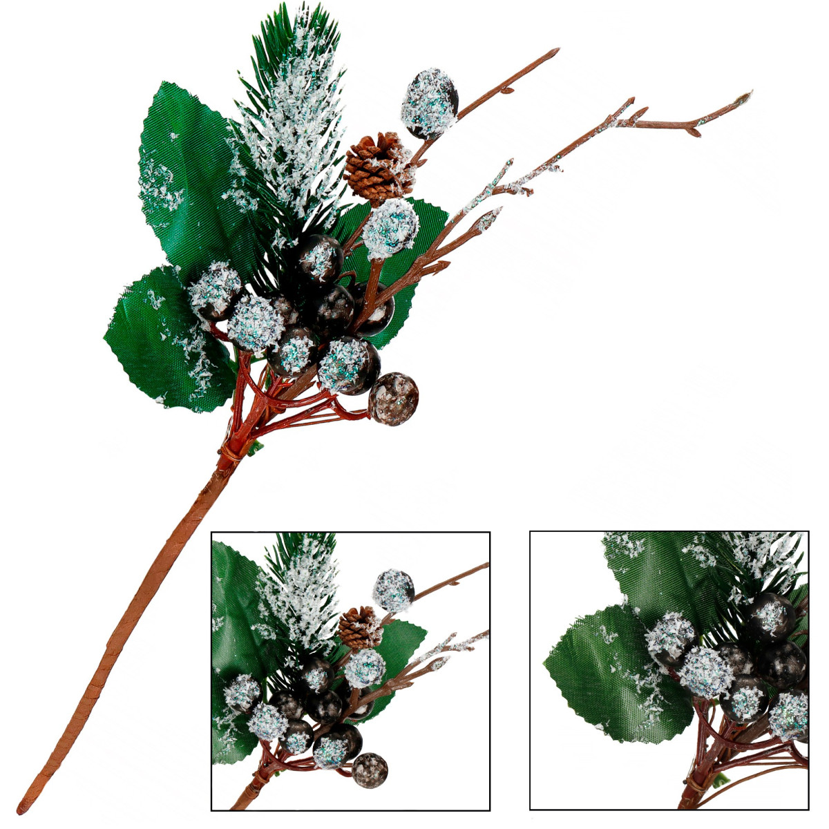 Pagrindinė informacija: Prekės ženklas: Springos® Spalva: ruda / balta / žalia Medžiaga: plastikas Produkto tipas: dekoratyvinė šaka Dekoratyvinis sniegas Šakoje yra: pelenų uogos / šakos / džuto virvutė / kankorėžis Šakų skaičius: 1 Išmatavimai: Bendras ilgis: 25 cm Bendras plotis: 10 cm Stiebo ilgis: 10 cm Pelenų uogų skersmuo: 1,3 mm Kankorėžio skersmuo: 2 cm Šakų plotis: 4,4 mm