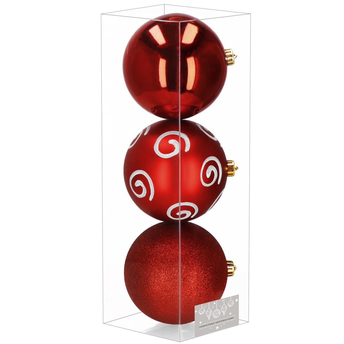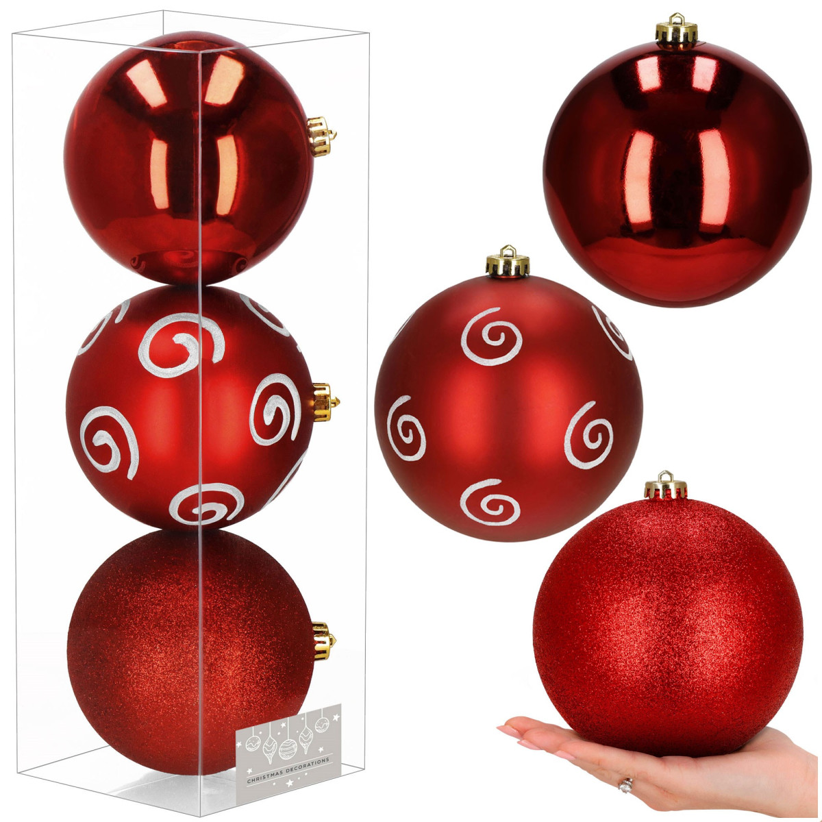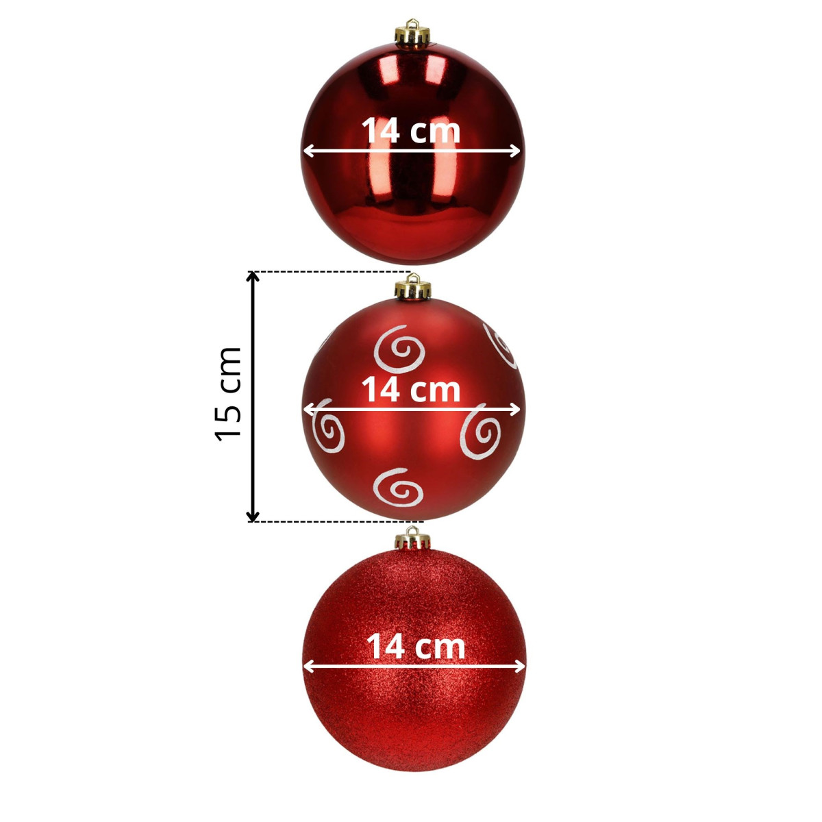Pagrindinė informacija Prekės ženklas: Springos® Medžiaga: plastikas Spalva: raudona, balta Kiekis rinkinyje: 3 vnt Nesulaužomos burbulai Kabinimo virvelės komplekte Tipas: pusiau matiniai / su blizgučiais / blizgūs Forma: apvali Rinkinyje yra: 1x burbulas su blizgučiais 1x pusiau matinė burbulas su baltomis spiralėmis 1x blizgus burbulas Matmenys: Aukštis su kabliu: 15 cm Skersmuo: 14 cm