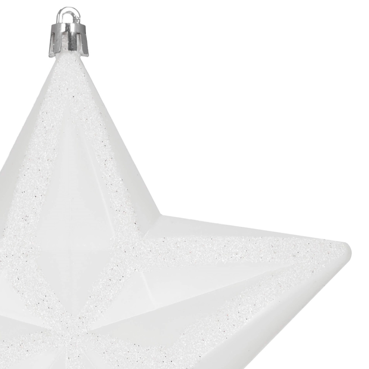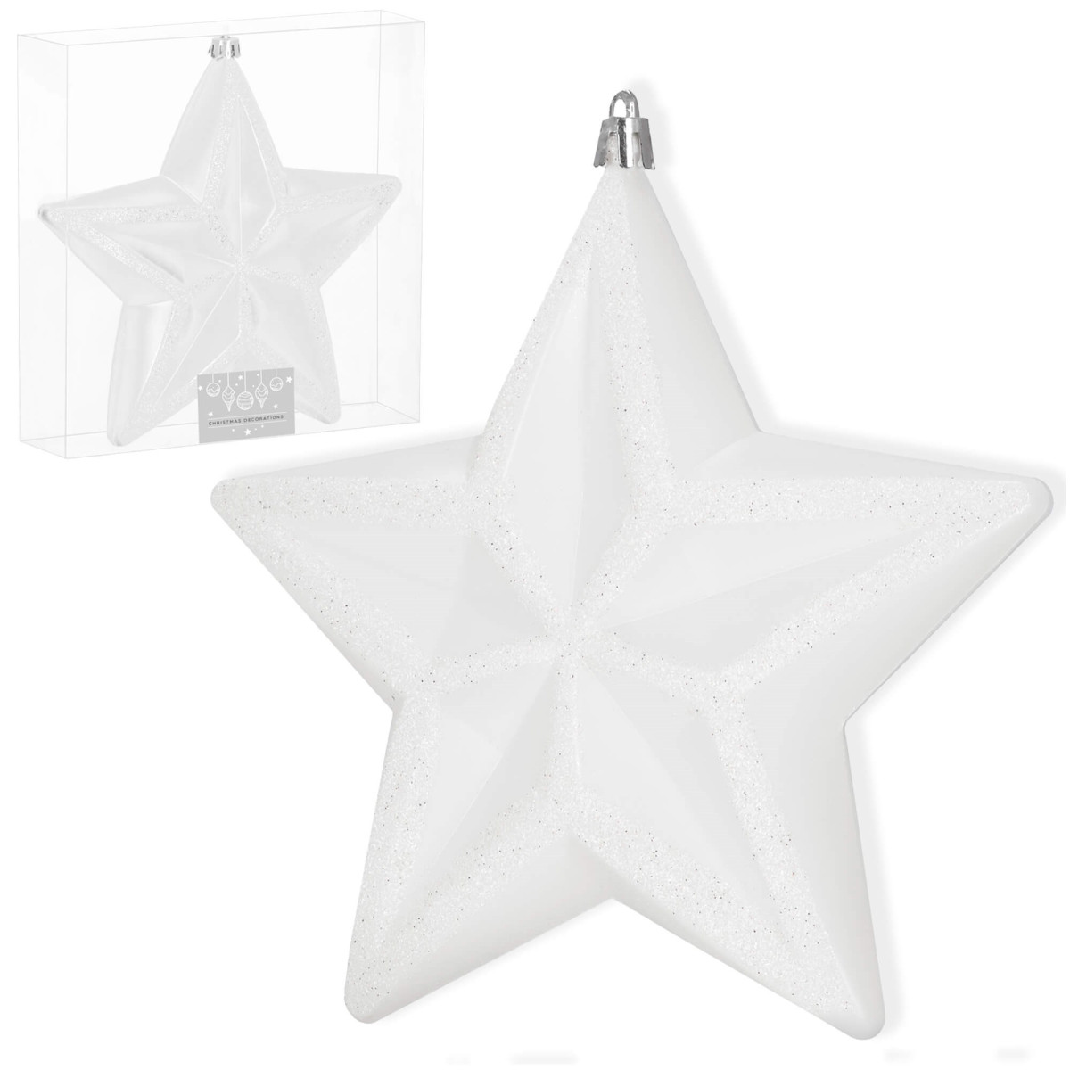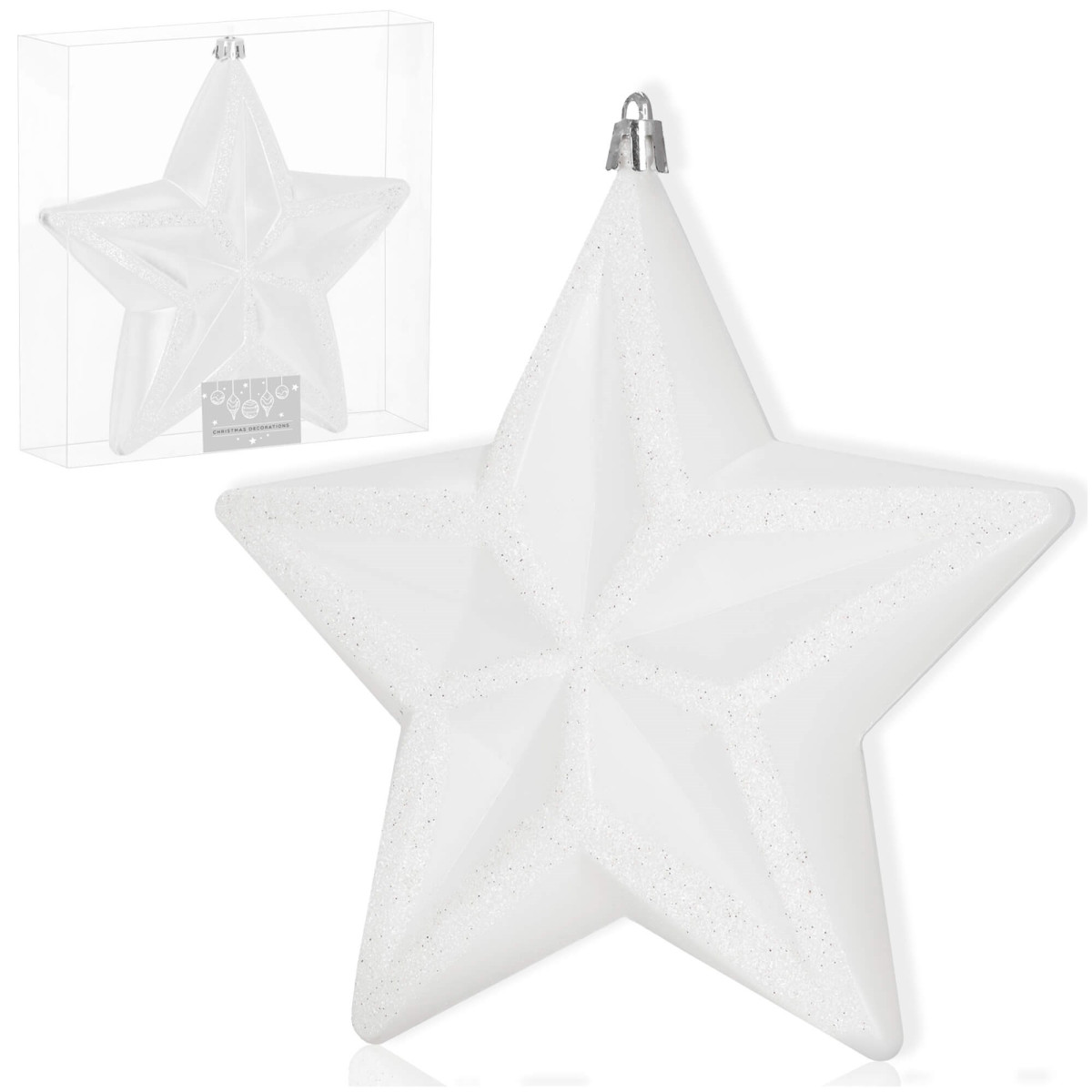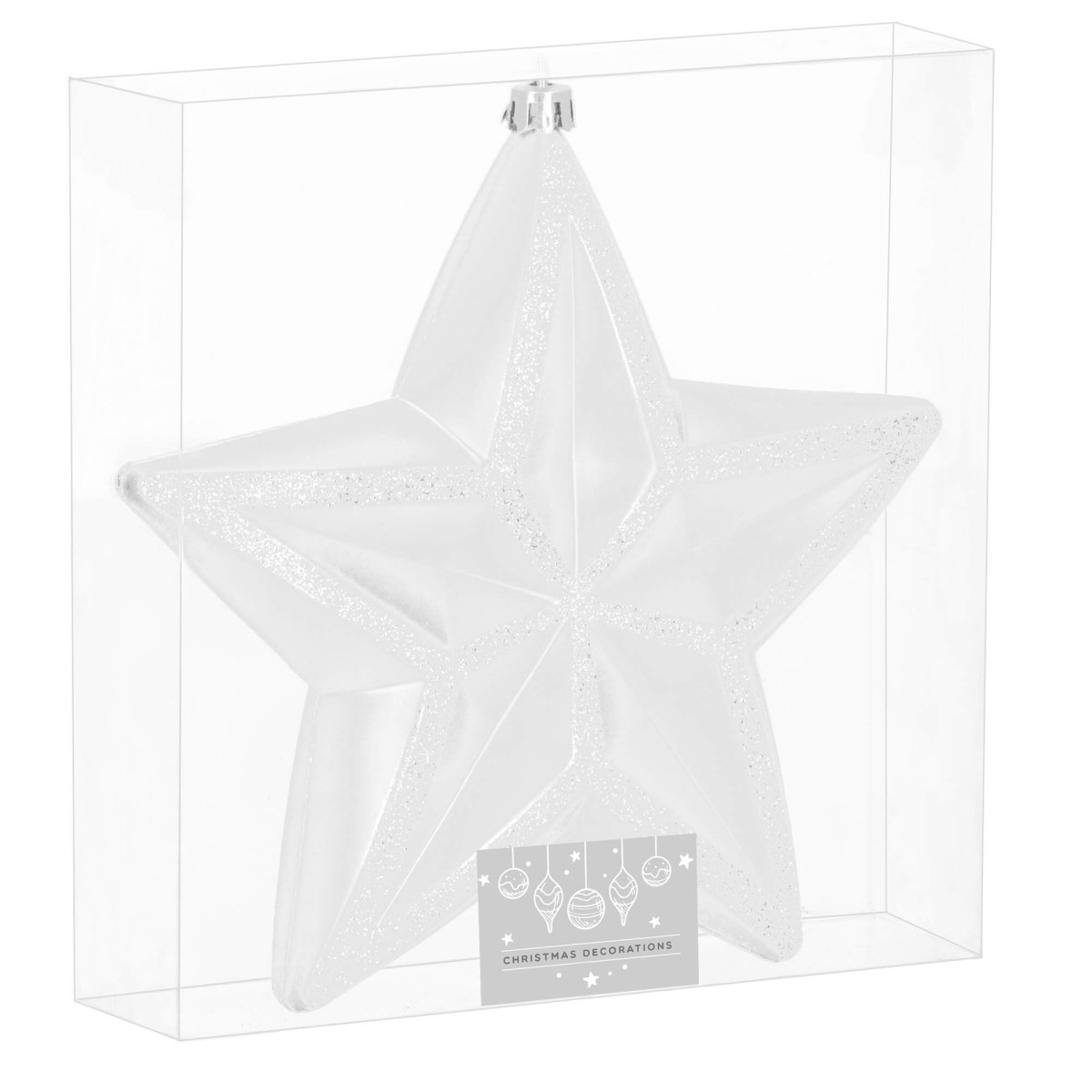 Pagrindinė informacija: Prekės ženklas: Springos® Medžiaga: plastikas Spalva: balta Vienetų skaičius rinkinyje: 1 Kartu pridedama virvelė pakabinimui Nesudūžtantis Tipas: blizgus / matinis Forma: žvaigždė Išmatavimai: Bendras aukštis: 16 cm Aukštis be pakabinimo: 15 cm Plotis: 15 cm Storis: 3,5 cm