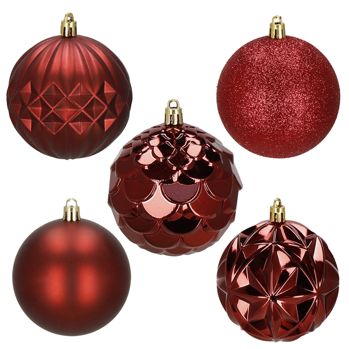 Pagrindiniai duomenys Prekės ženklas: Springos® Medžiaga: plastikas Spalva: raudonos atspalviai Komplekte dalių skaičius: 30 Nesudūžtančios burbulai Komplekte yra virvelės kabinimui Tipas: pusiau matiniai / blizgantys / blizgūs Forma: apvali Komplekte yra: 6x pusiau matinis burbulas 6x blizgantis burbulas su geometriniu raštu 6x blizgantis burbulas su įspaustu raštu 6x blizgantys burbulai su gliteriu 6x matiniai burbulai su įspaustu raštu 6x blizgantys burbulai su įspaustu raštu Matmenys: Bendras aukštis: 8 cm Skersmuo be virvelės: 7 cm