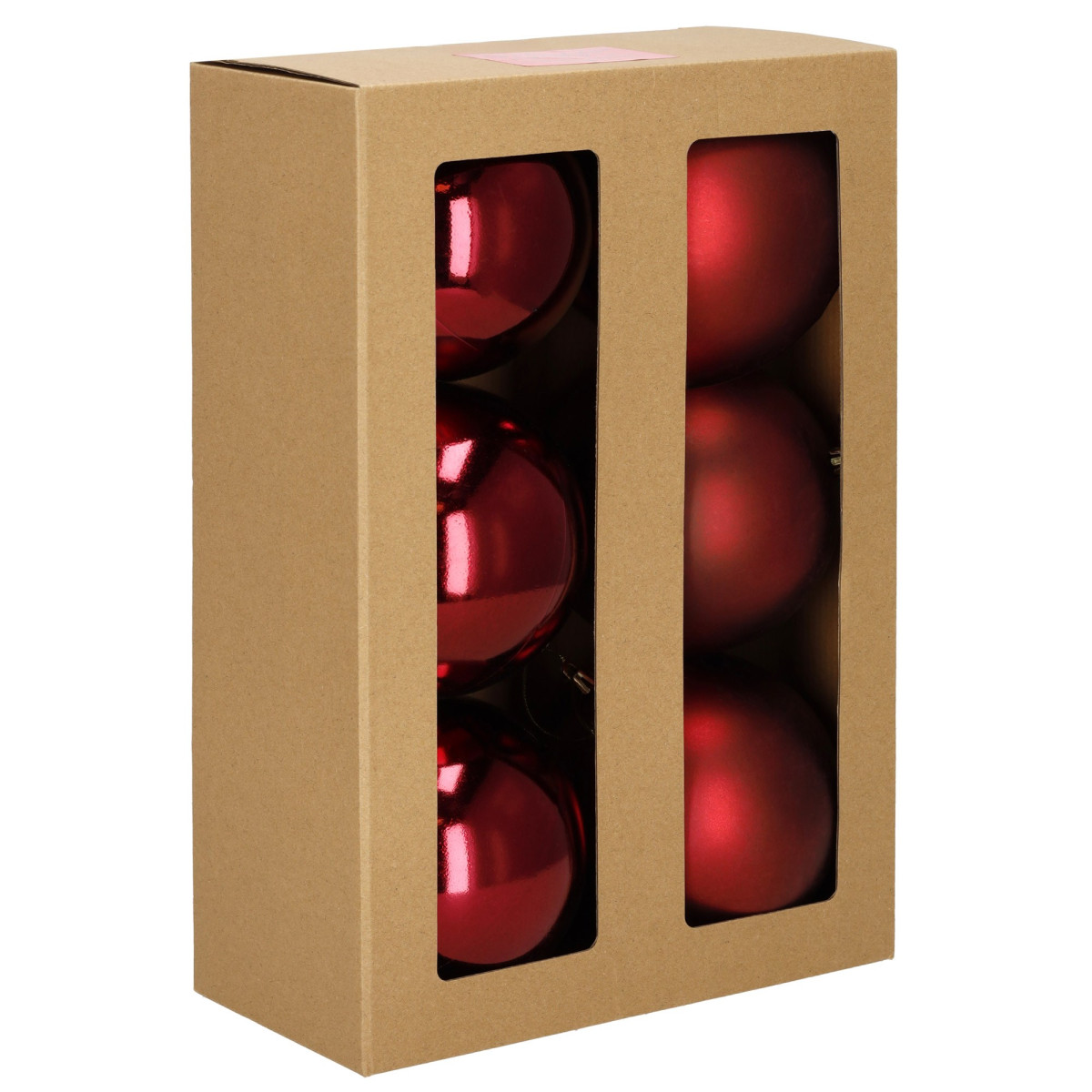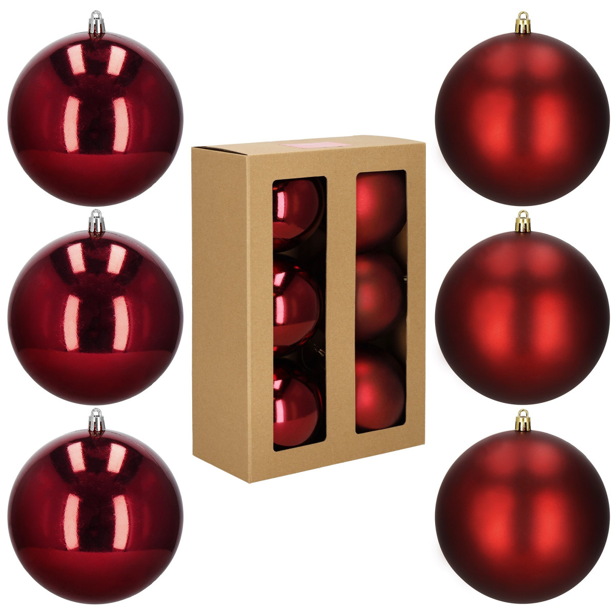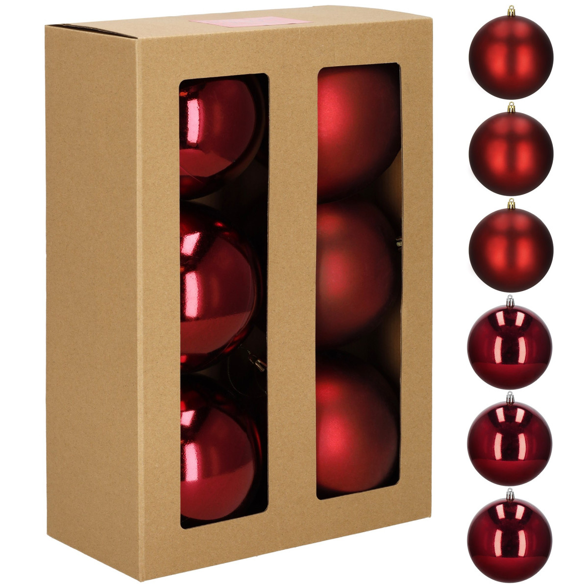 Prekės ženklas: Springos® Spalva: raudona Medžiaga: plastikas Kiekis: 6 vnt Raštai: pusiau matiniai / blizgūs Forma: apvali Nesudaužomi Kabinimo virvelės dovanų Rinkinį sudaro šie burbulai: 3x pusiau matiniai burbulai 3x blizgūs burbulai Matmenys: Bendras aukštis: 13 cm Aukštis (be kabinimo kilpos): 12 cm