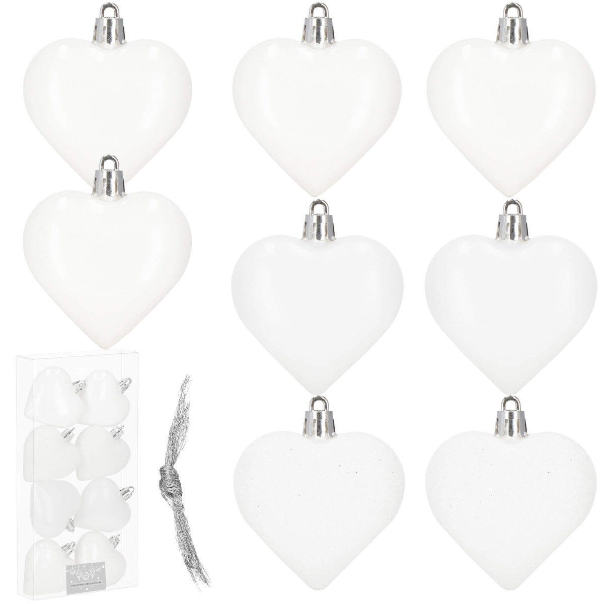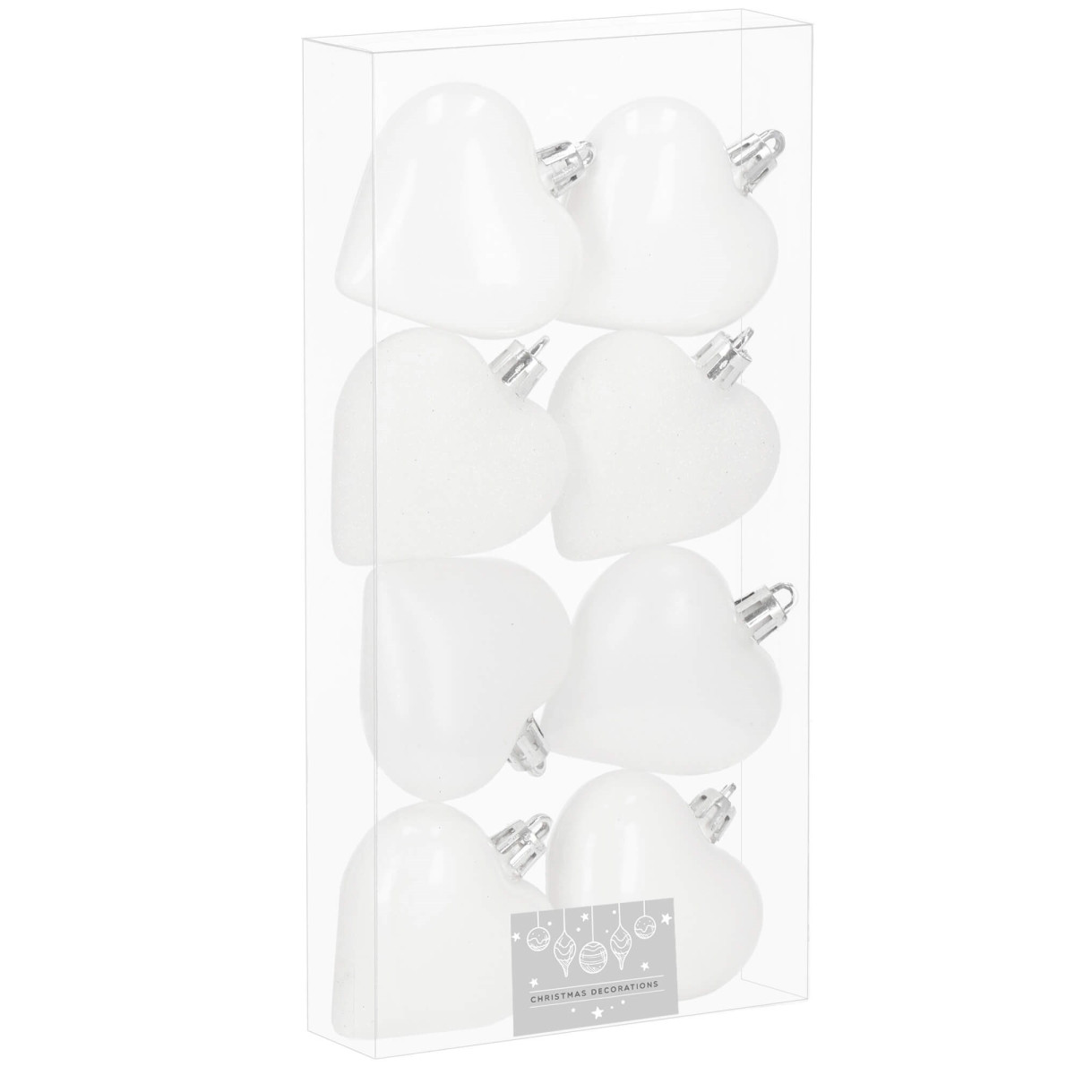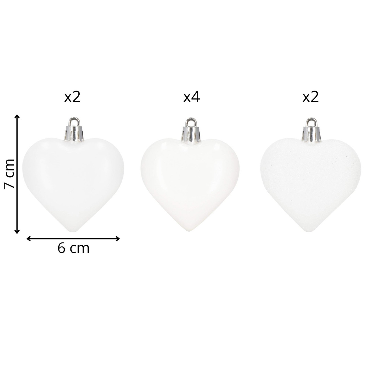 Pagrindinė informacija Prekės ženklas: Springos® Medžiaga: plastikas Spalva: balta Vienetų skaičius rinkinyje: 8 Nesuskaldomos Kalėdų burbulai Tipas: blizgūs / su blizgučiais / matiniai Forma: širdis Rinkinyje yra: 4 blizgūs burbulai 2 burbulai su blizgučiais 2 matiniai burbulai Matmenys: Bendras ilgis: 7 cm Ilgis be kabliuko: 5,5 cm Plotis plačiausioje vietoje: 6 cm