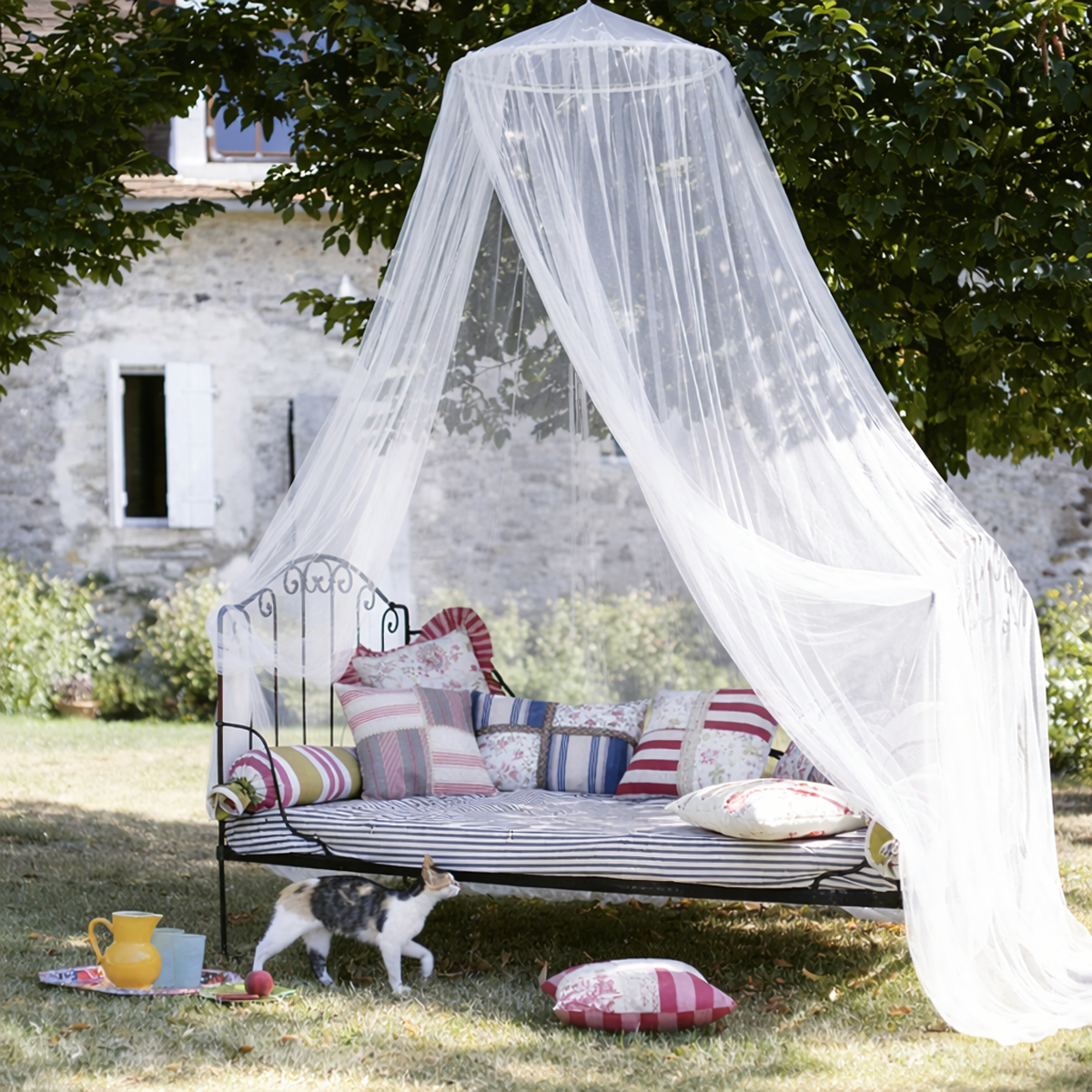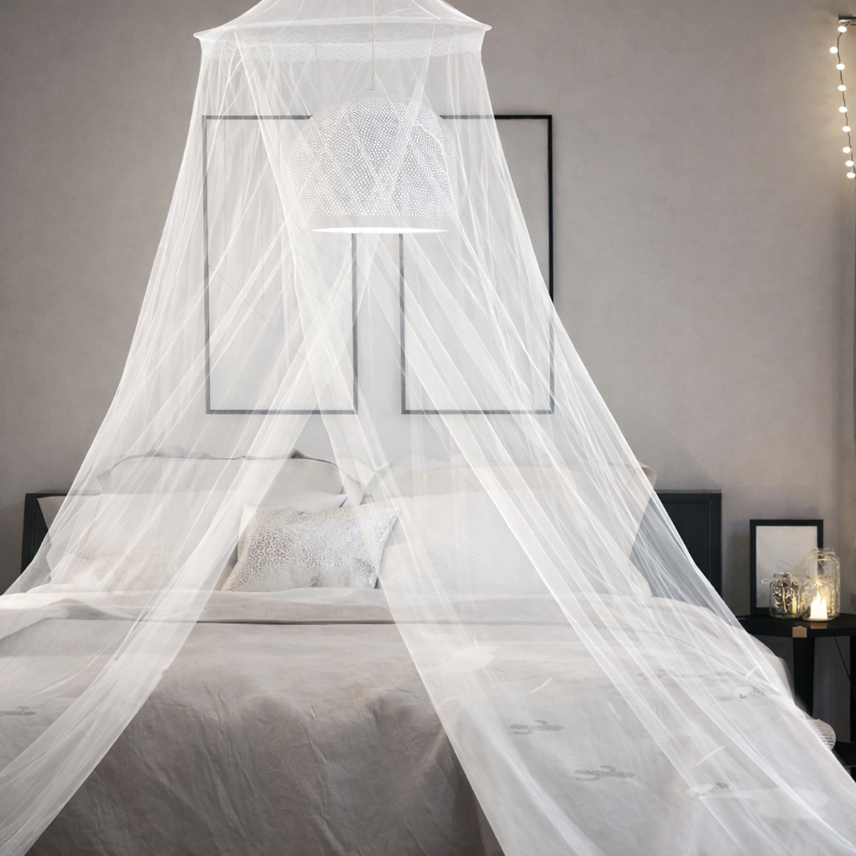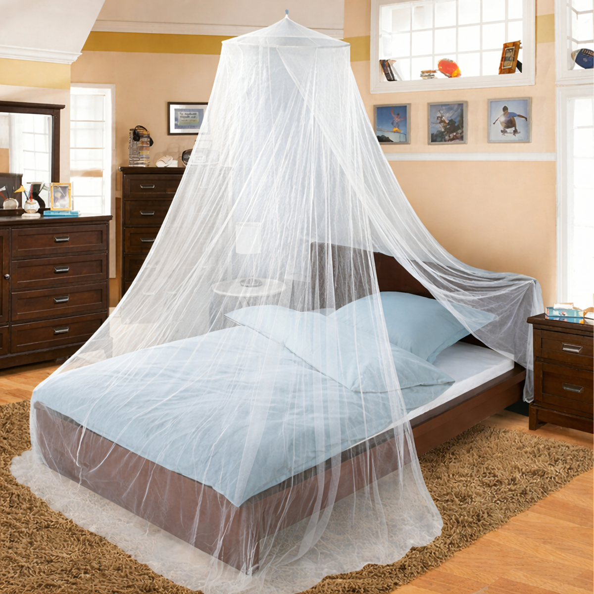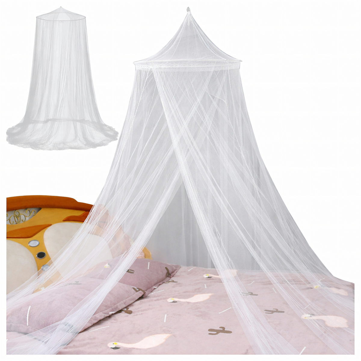 Didelė moskitinė virš lovos padeda apsaugoti nuo uodų, musių ir kitų skraidančių vabzdžių. Ji tinka naudoti miegamajame, vaikų kambaryje ar poilsio vietoje, kur norisi daugiau ramybės ir komforto. Lengvas baldakimo tipo tinklelis sukuria jaukią aplinką ir padeda ramiau ilsėtis.