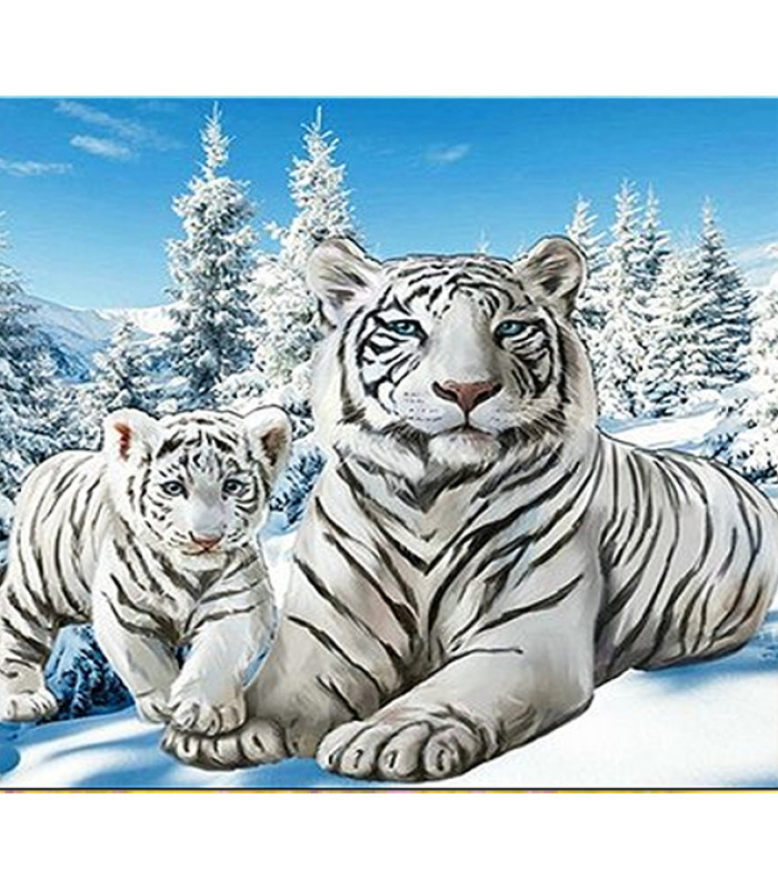 Diamentinis Siuvinėjimas - Sniego Tigrų Motyvas