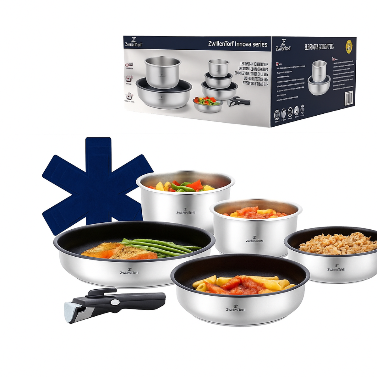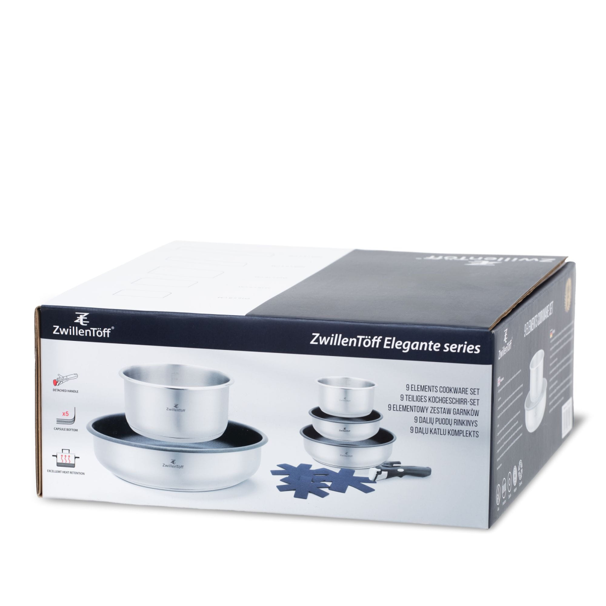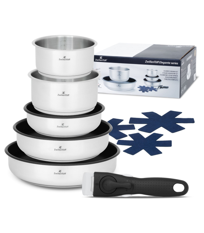 Nerūdijančio plieno puodų ir keptuvių rinkinys su nuimama rankena 9 dalių, ZWILLENTOFF ZT-31330