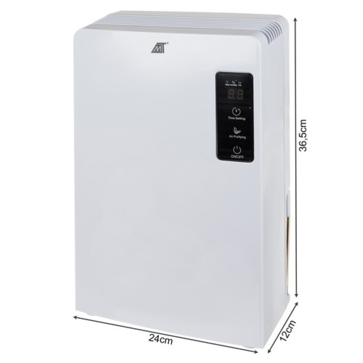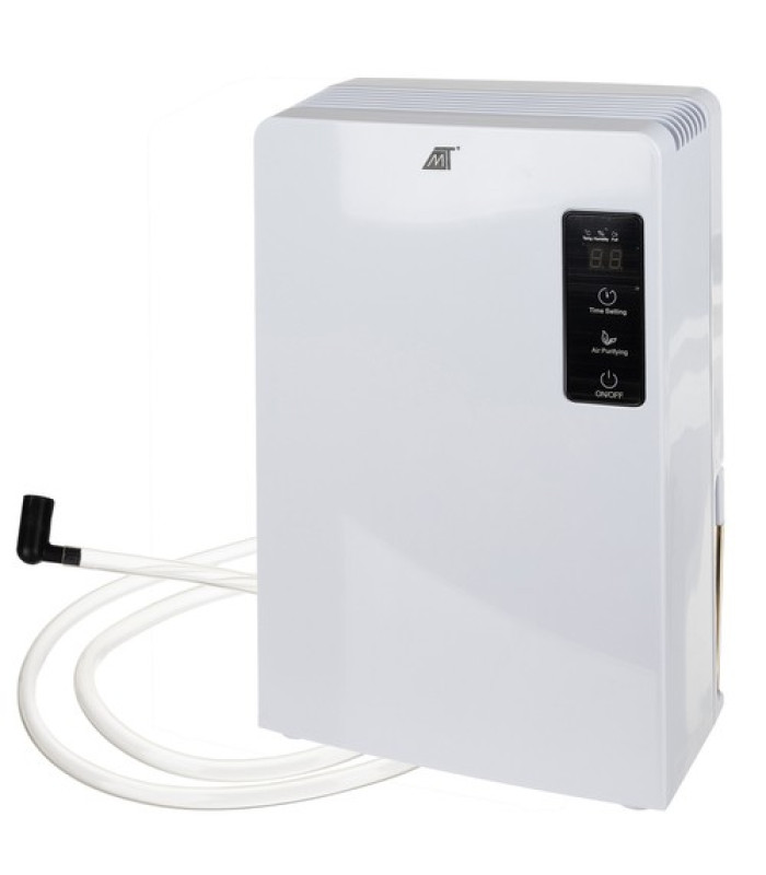 - Specifikacija – spalva: balta; medžiaga: ABS, aliuminis, AS, PVC; ekranas: LCD; laikmatis: 24 valandų; 2 viename oro valymas ir sausinimas; veikia iki -5°C; automatinis atitirpinimas; patalpos dydis: iki 30m²; UV ir TiO2 technologija; triukšmo lygis: 40 dB; sausinimo našumas: iki 700 ml per dieną; vandens talpos talpa: 1800 ml; galimybė vandens nutekėjimui per žarną; įtampa: 220-240V; galia: 90W; automatinis išjungimas; Peltier sistema; tinkamas namams, biurui; išimama vandens talpa; matmenys: 36,5/13,7/24,5 cm; žarnos ilgis: 100 cm; kabelio ilgis: 1,30 m; svoris: 2,382 kg; pakuotės svoris: 2,781 kg.