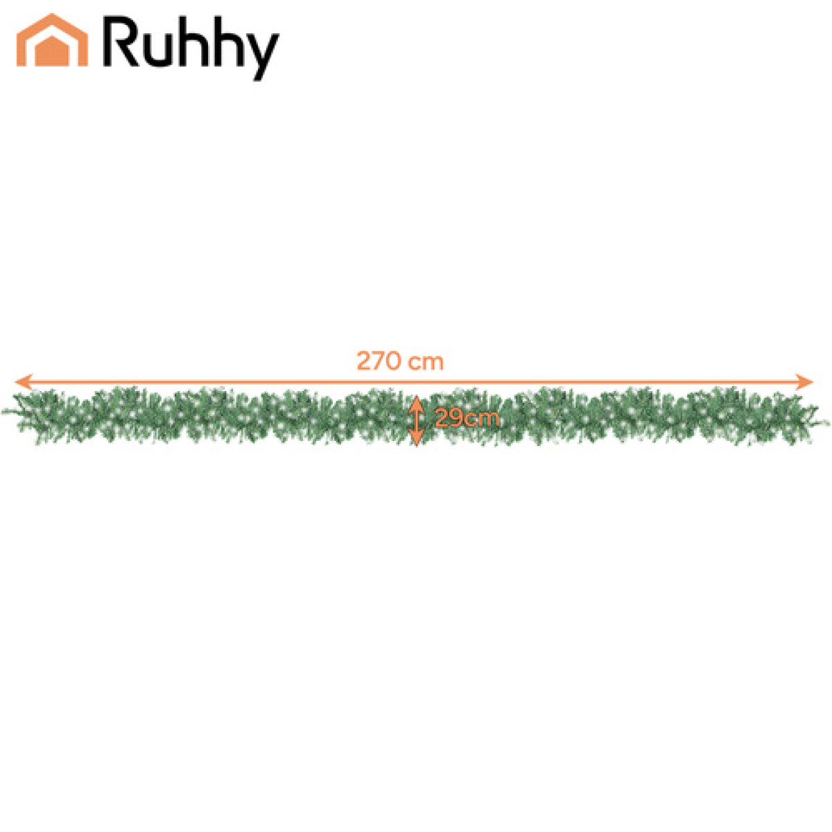 Kalėdinė girlianda sniegu padengtai eglutei 270 cm Ruhhy - tankiai žalia židinio, baliustrados ir durų puošmena - dekoratyvinė grandinėlė, kalėdinė dekoracija, dirbtinė eglutės šaka 29 cm pločio