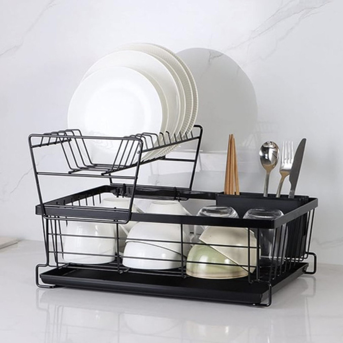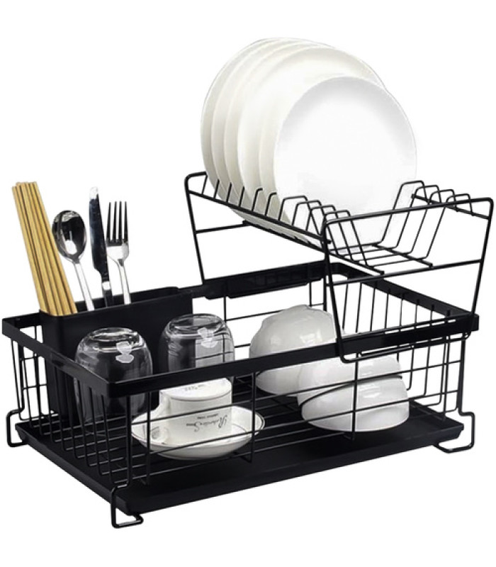 RUHHY dviejų aukštų indų džiovyklė, didelė, juoda, pastatoma