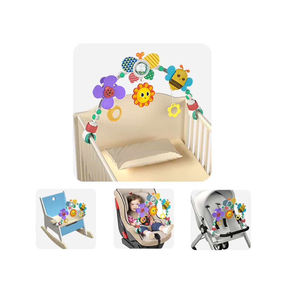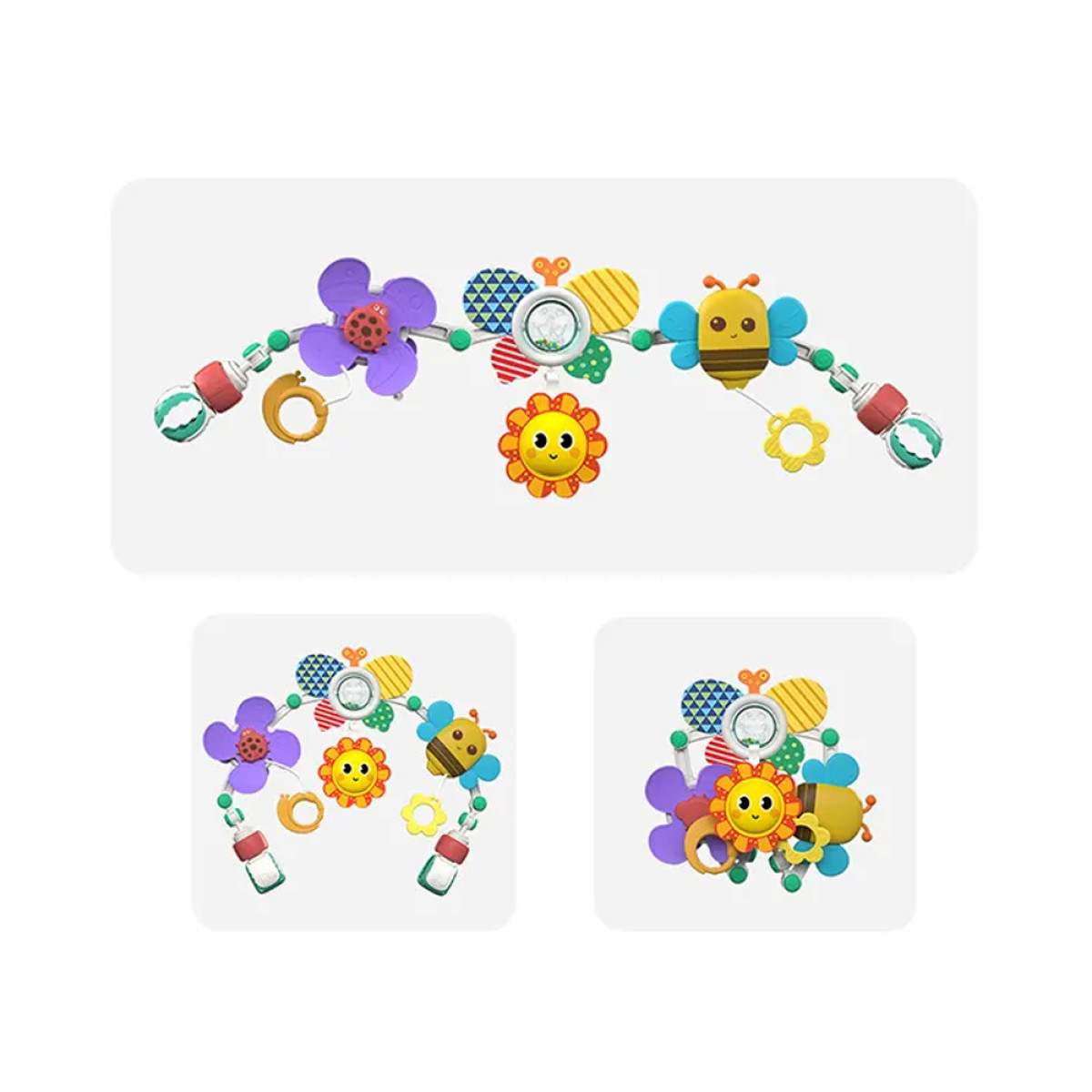 Spalvingas žaislų lankas vežimėliui ir foteliukui
