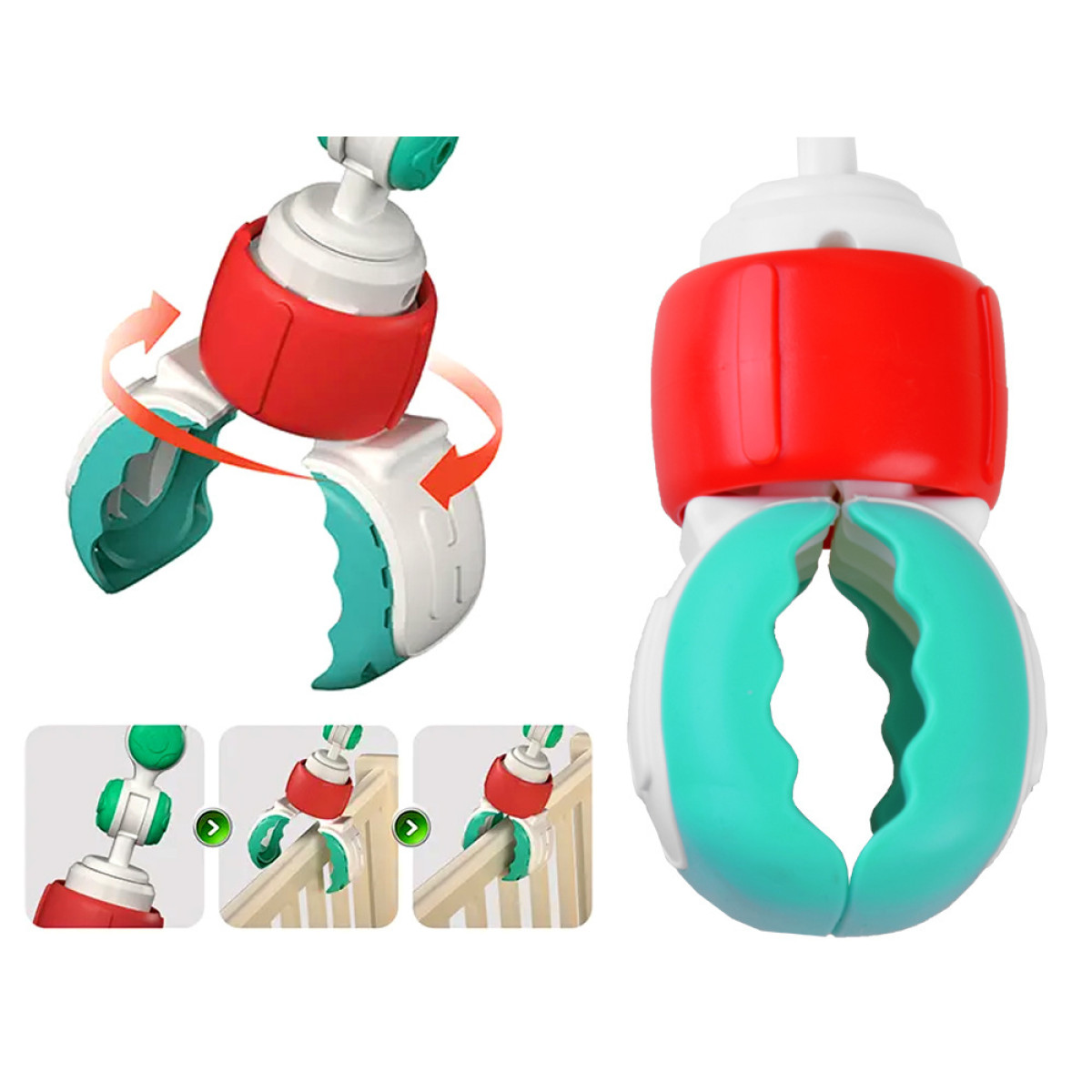 • Lengva montuoti: žaislas lengvai pritvirtinamas prie vežimėlio ar foteliuko.
